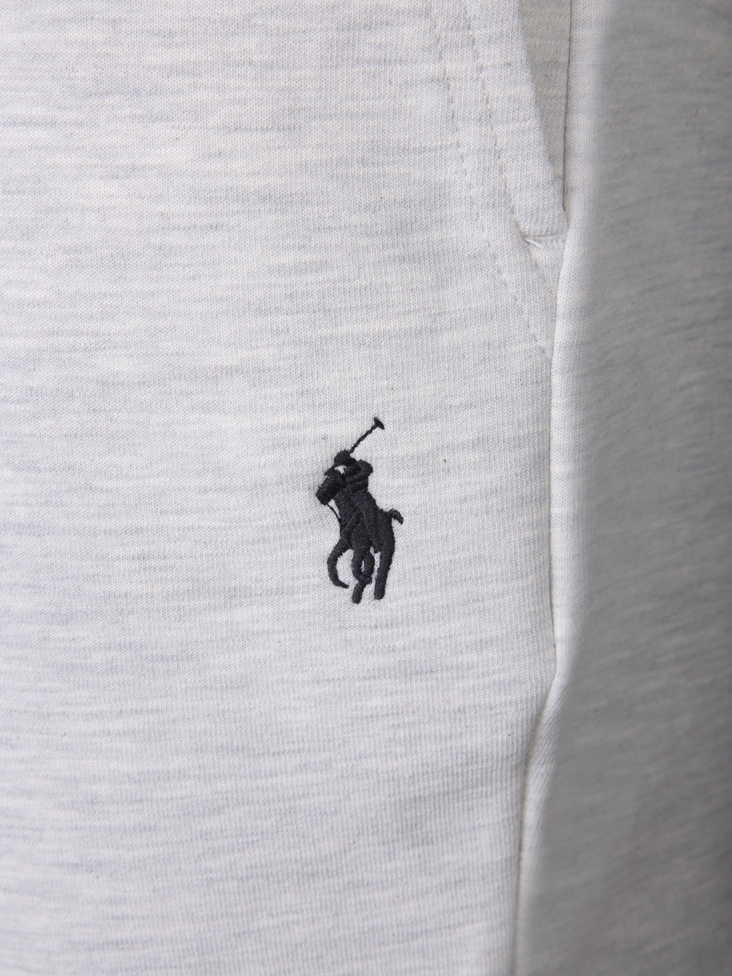 Jogger pants in double-knit fabric. Elastic waistband with drawstring. Side zip pockets.