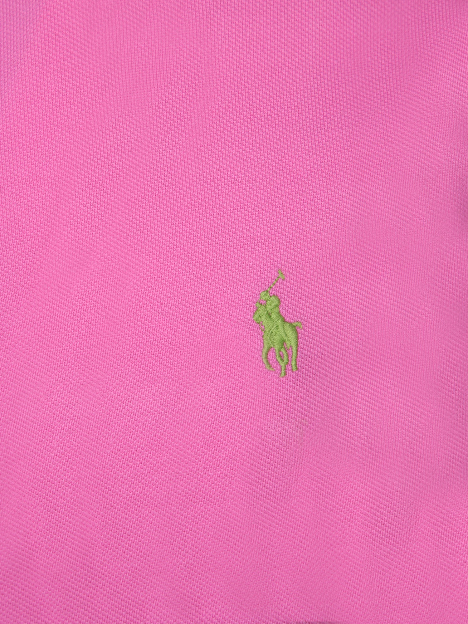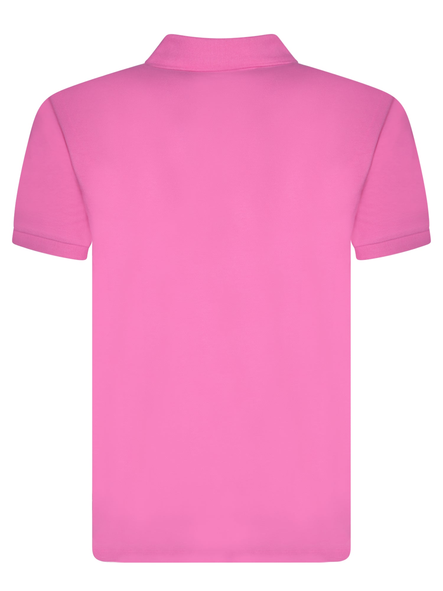 Short sleeve pique polo. Ribbed collar with three-button placket. Green embroidered logo on the front.