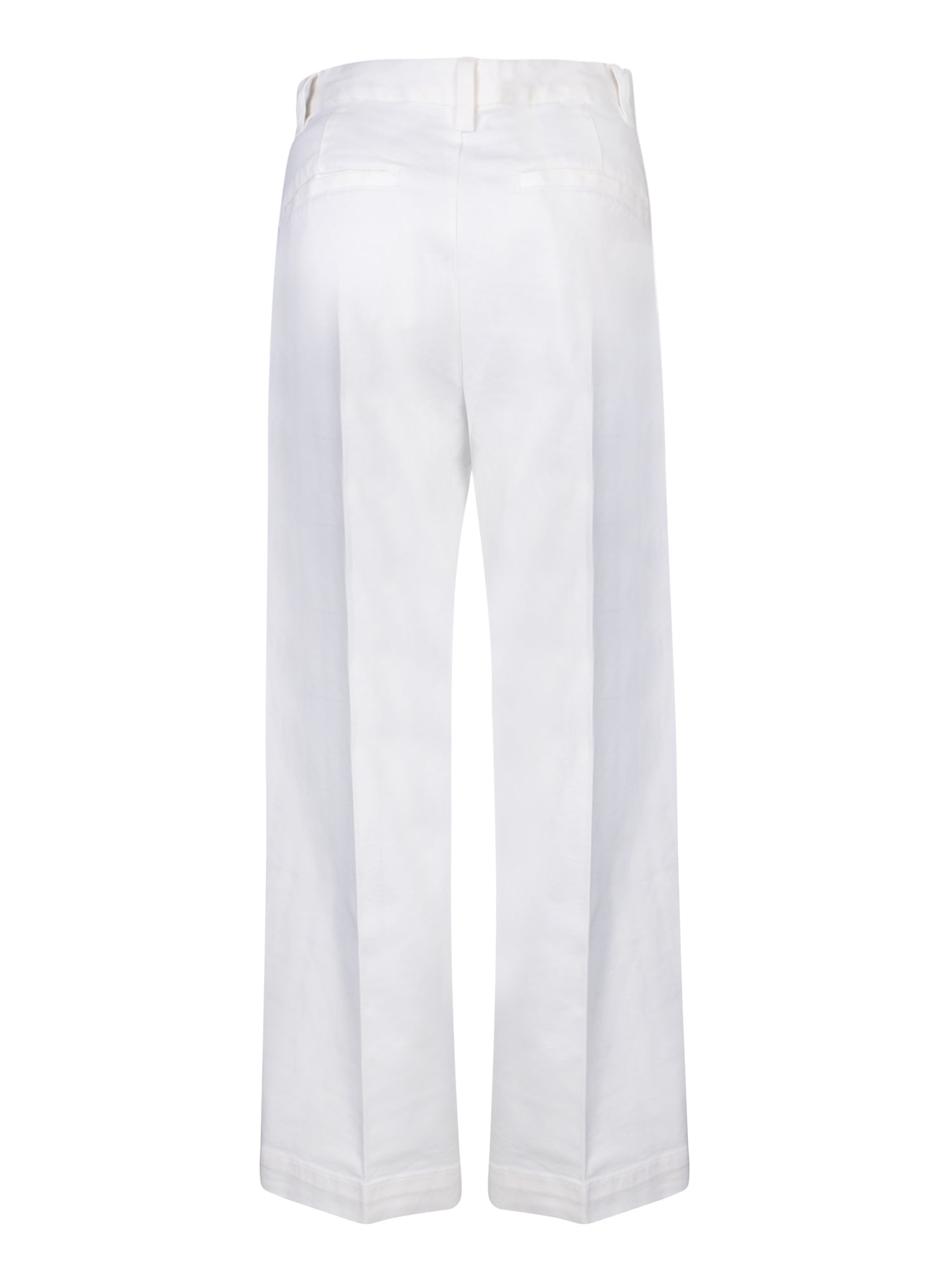 Cropped trousers in pure white cotton. Minimalist design with zipper and button closure. Regular fit.