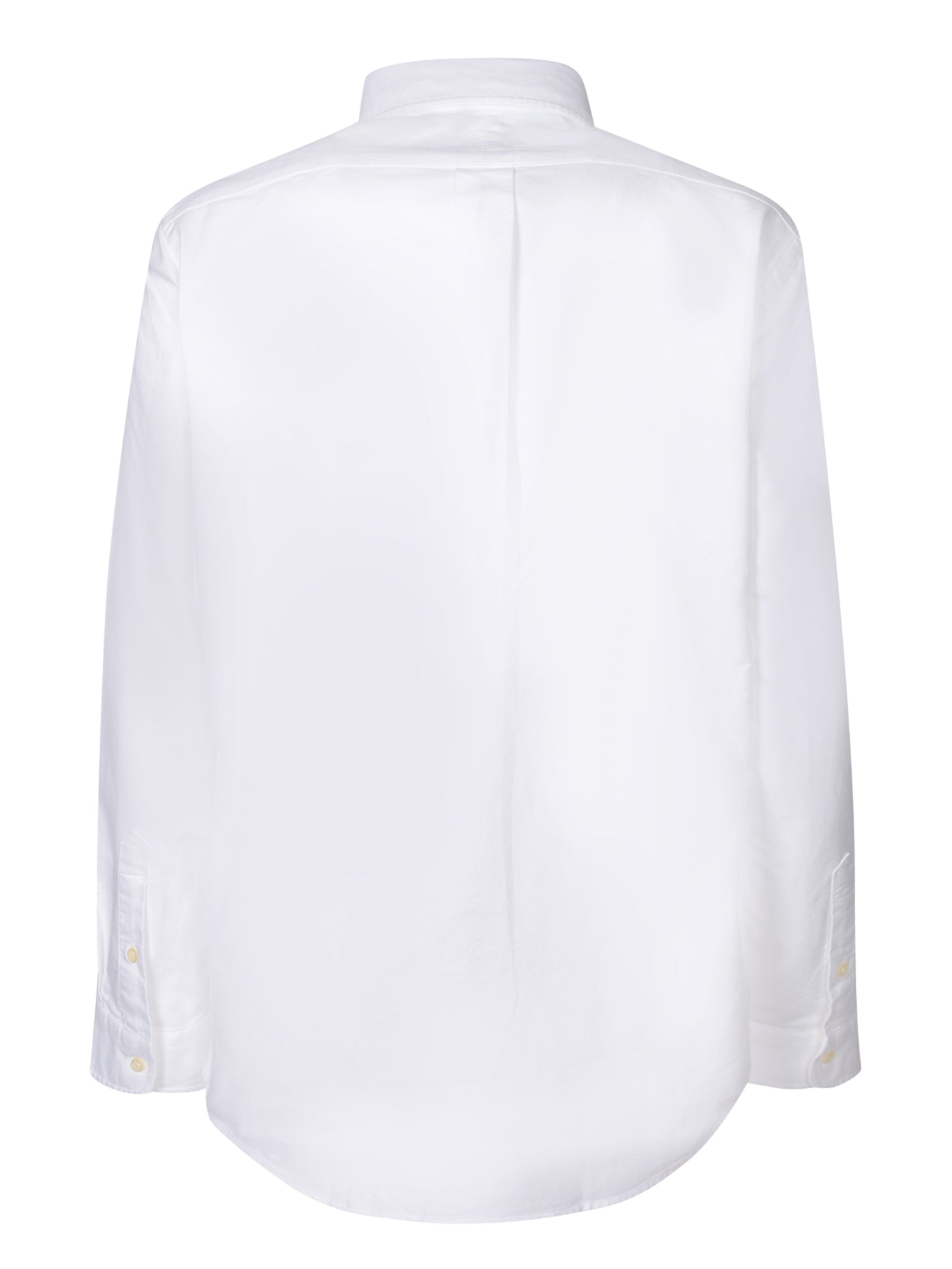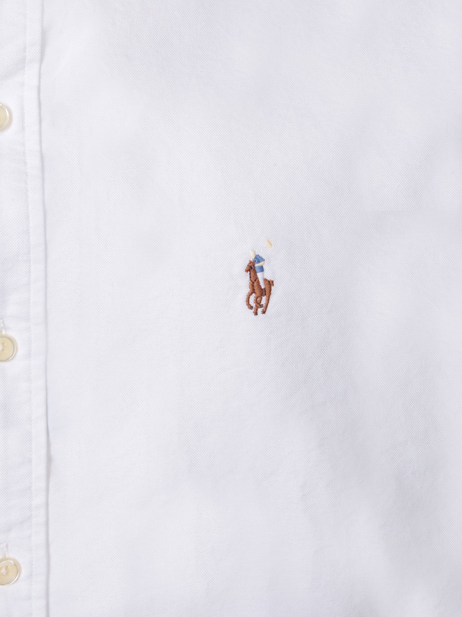Long-sleeve Oxford shirt. Button-down collar. Mother-of-pearl button closure.