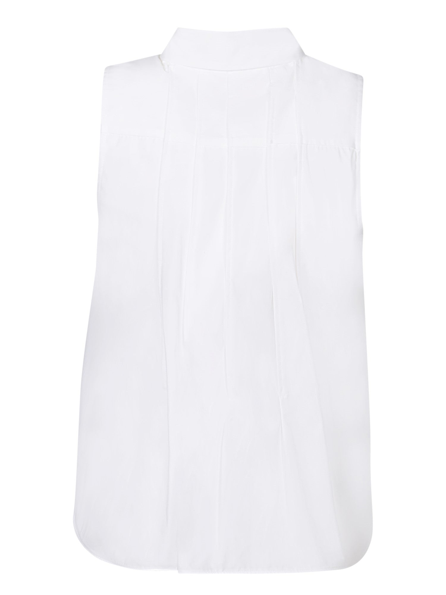 Sleeveless poplin cotton shirt. Classic collar and front button closure. Chest pocket.
