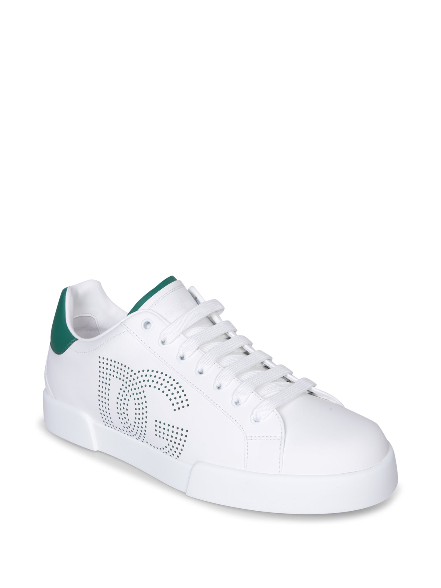 Smooth leather sneakers. Contrasting DG logo. Green details on the back.