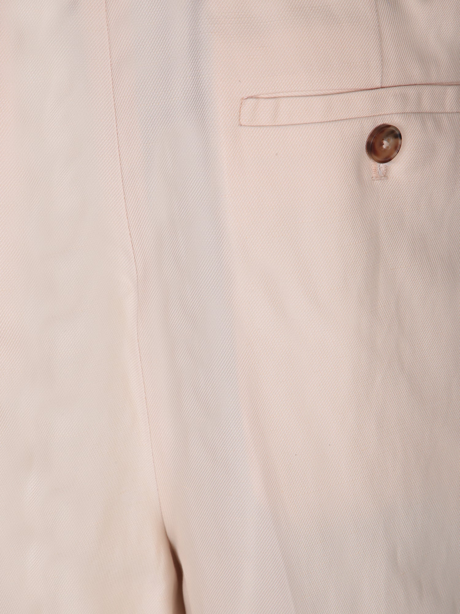 High waist with elastic back. Straight cut. Side pockets. Linen and viscose blend fabric.
