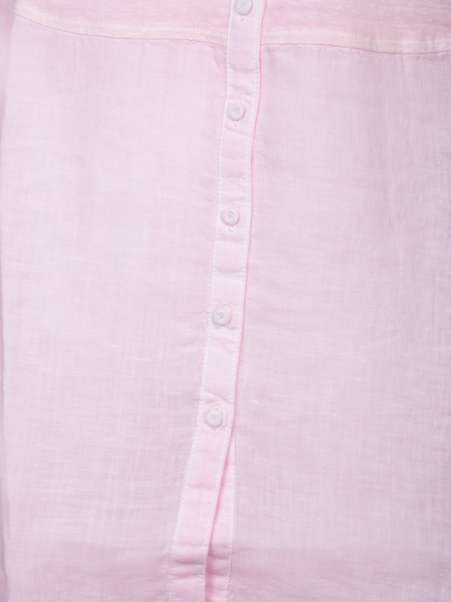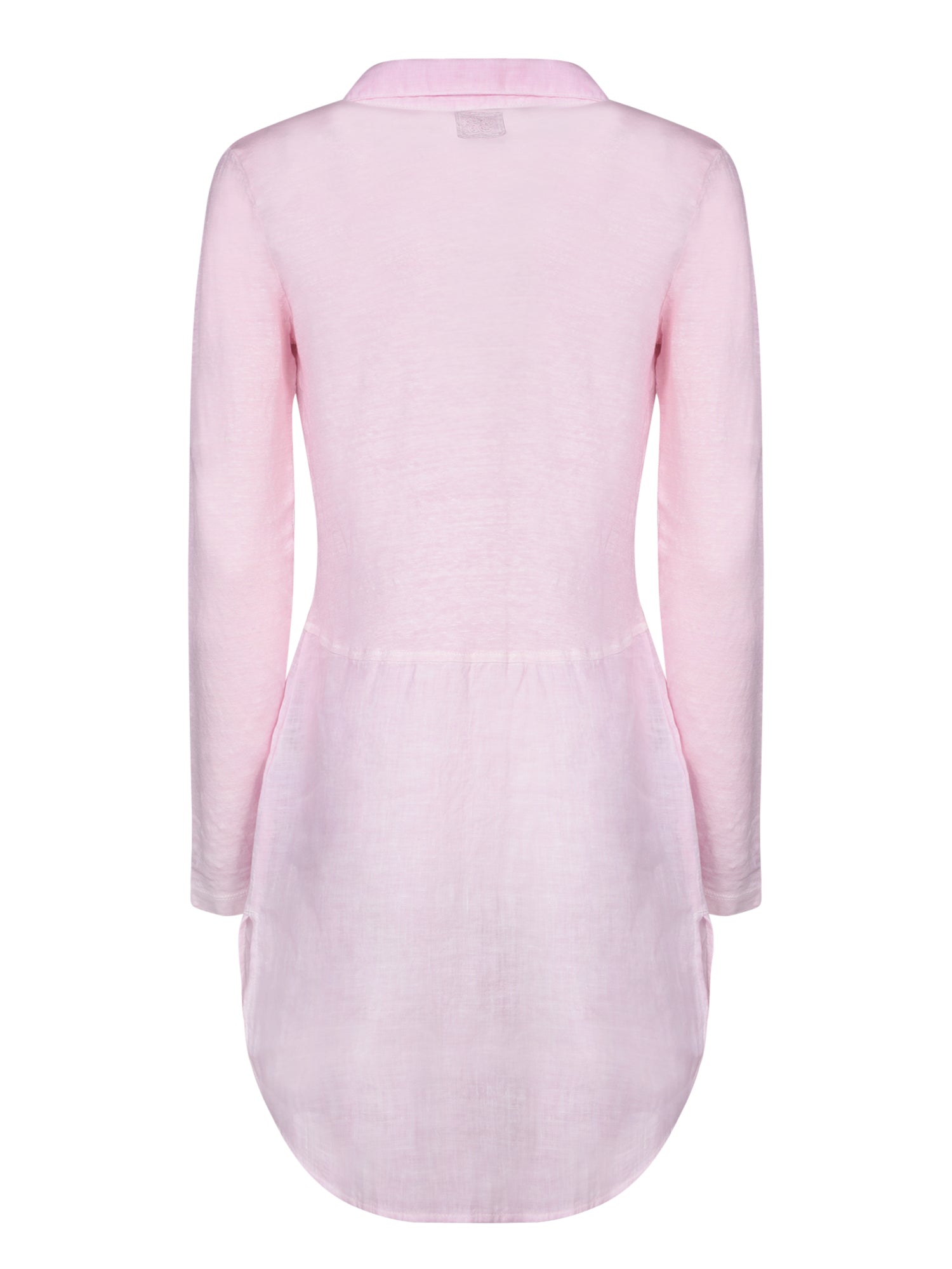 Long-sleeved long dress. Front buttons from collar to hem. Breathable linen fabric.