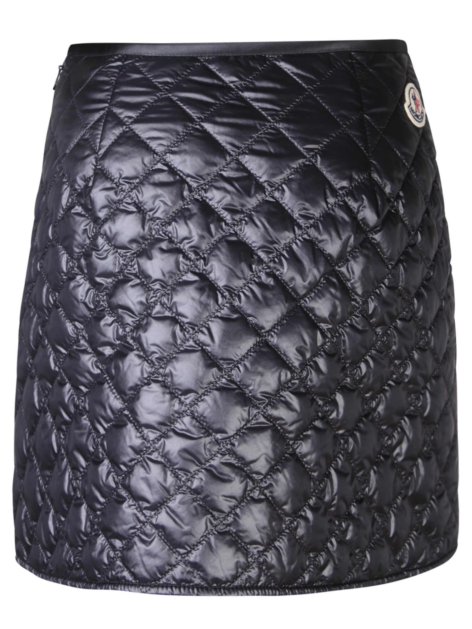 Quilted mini skirt. Shiny fabric. Elastic waistband.