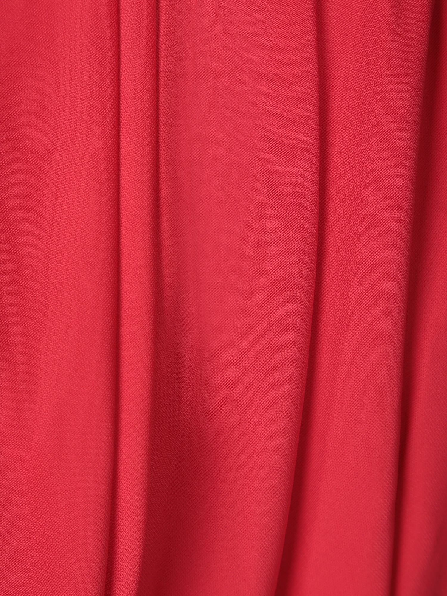 Long sleeves. Wrap-around design with central knot. Vibrant red color.