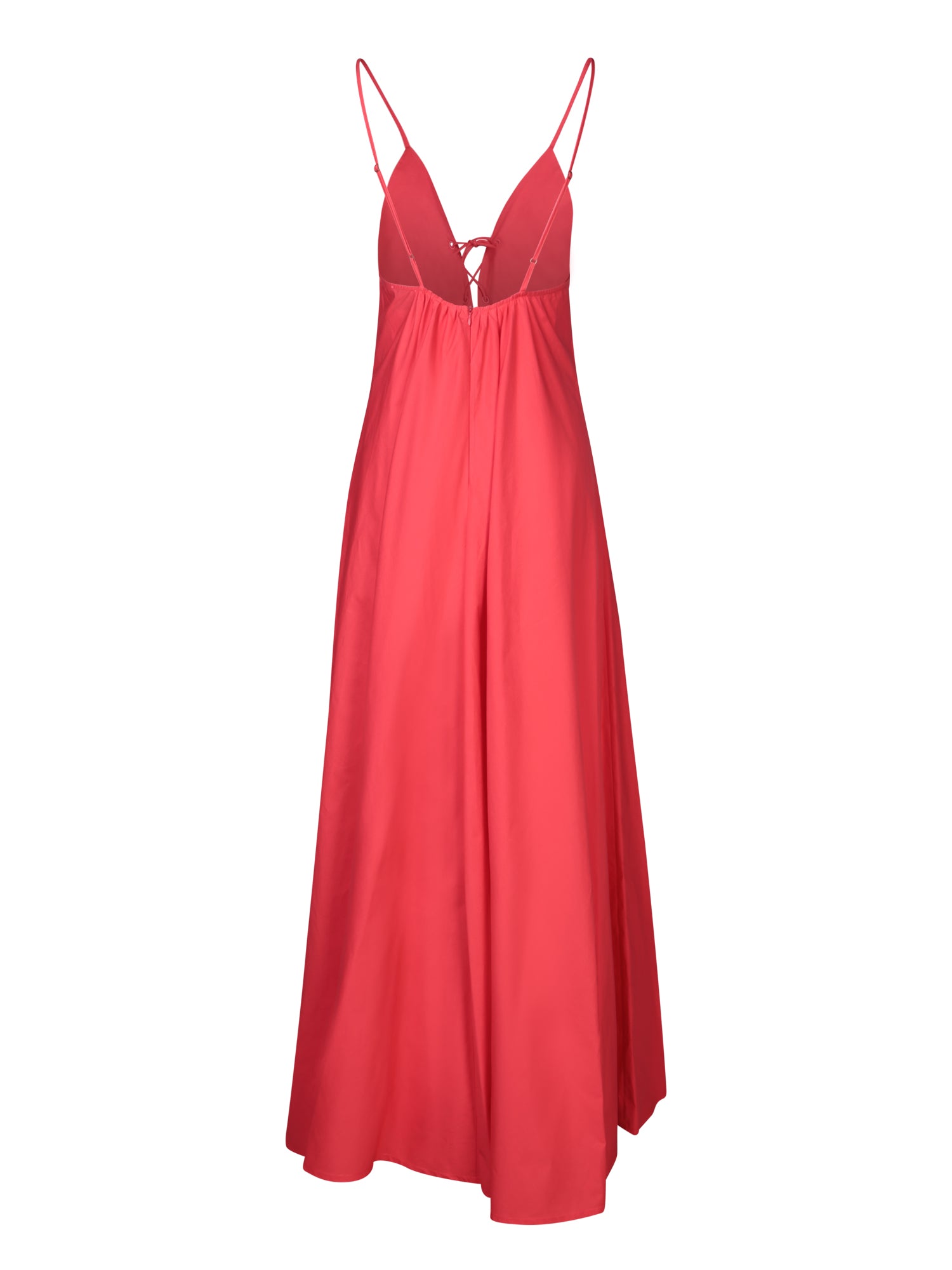Poplin slip dress. V-neckline with lace-up detail. Adjustable thin straps.