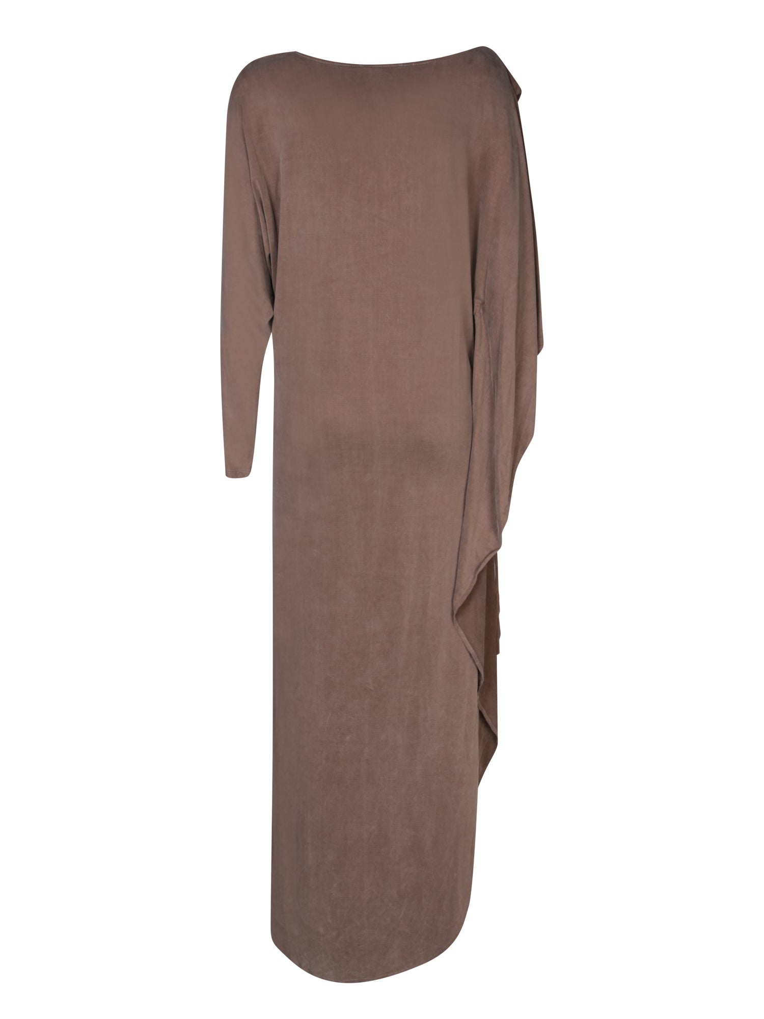 REV's high-quality cupro asymmetrical dress features a floating single sleeve for unmistakable modern elegance. The integrated belt emphasizes the silhouette, with an innovative design that provides eye-catching asymmetry.