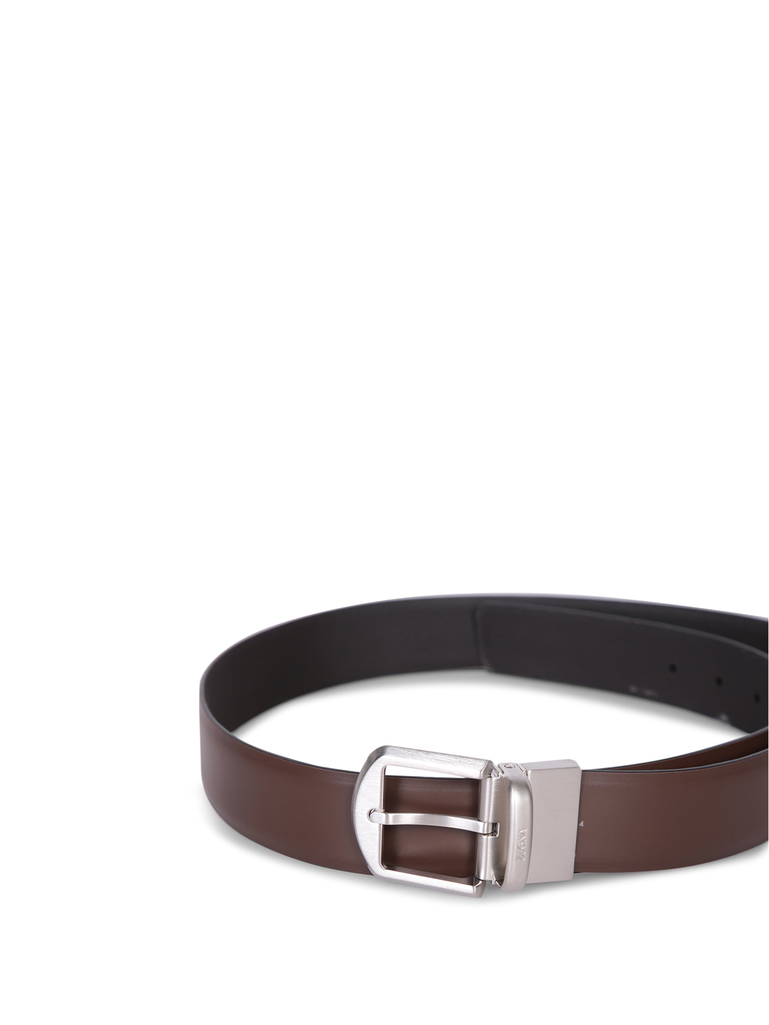 High-quality leather belt. Silver-finish metal buckle. Reversible design.