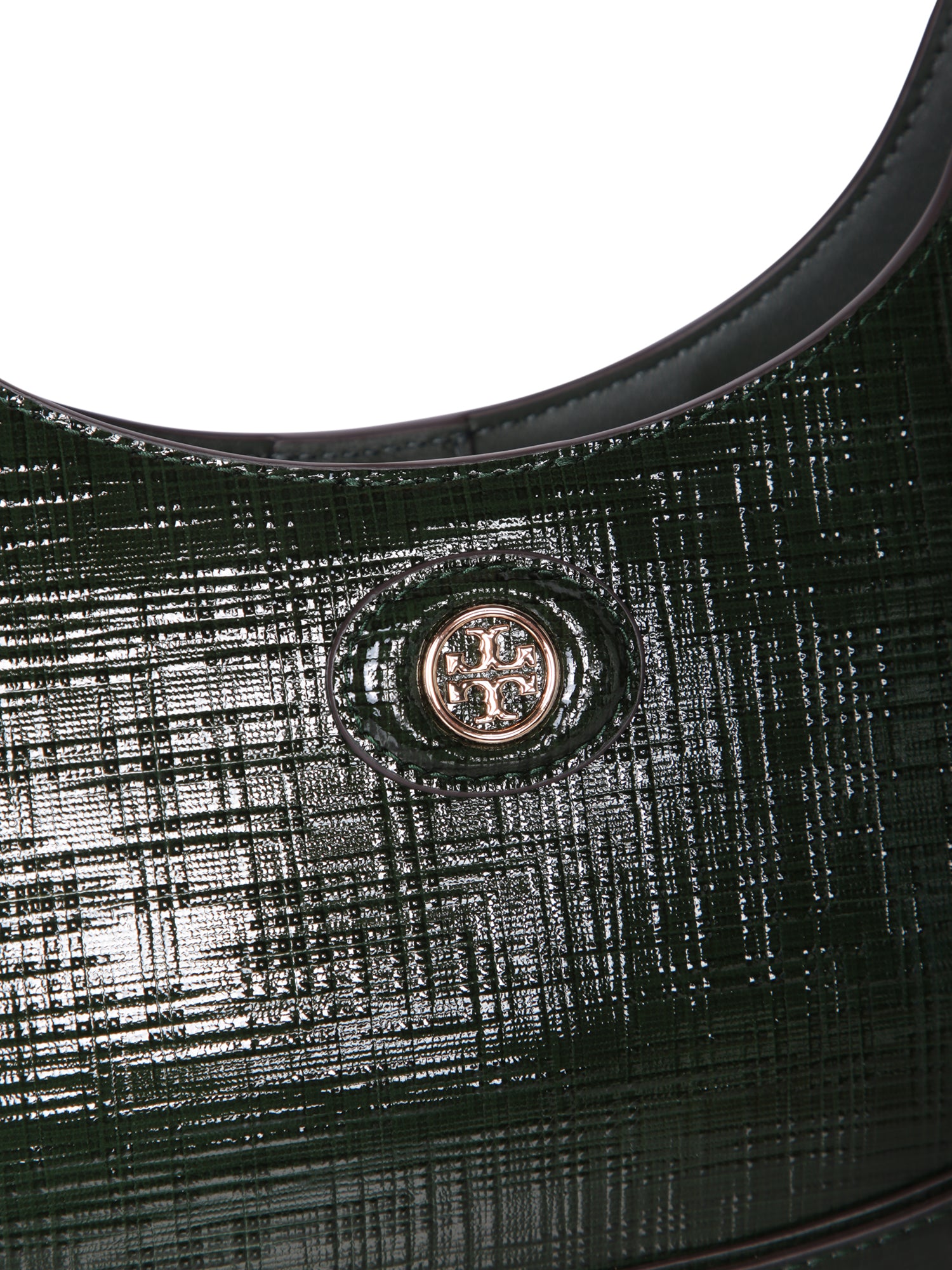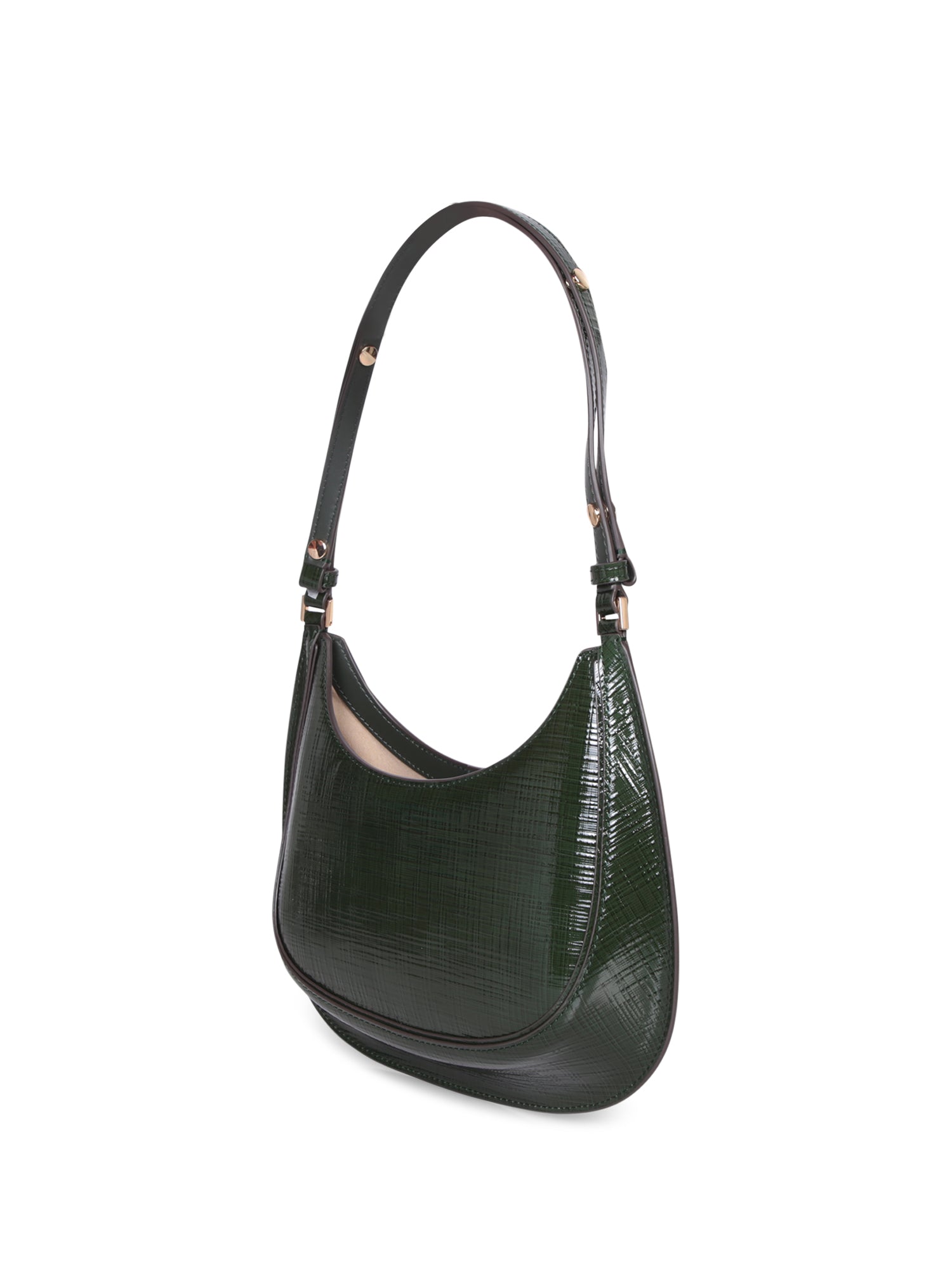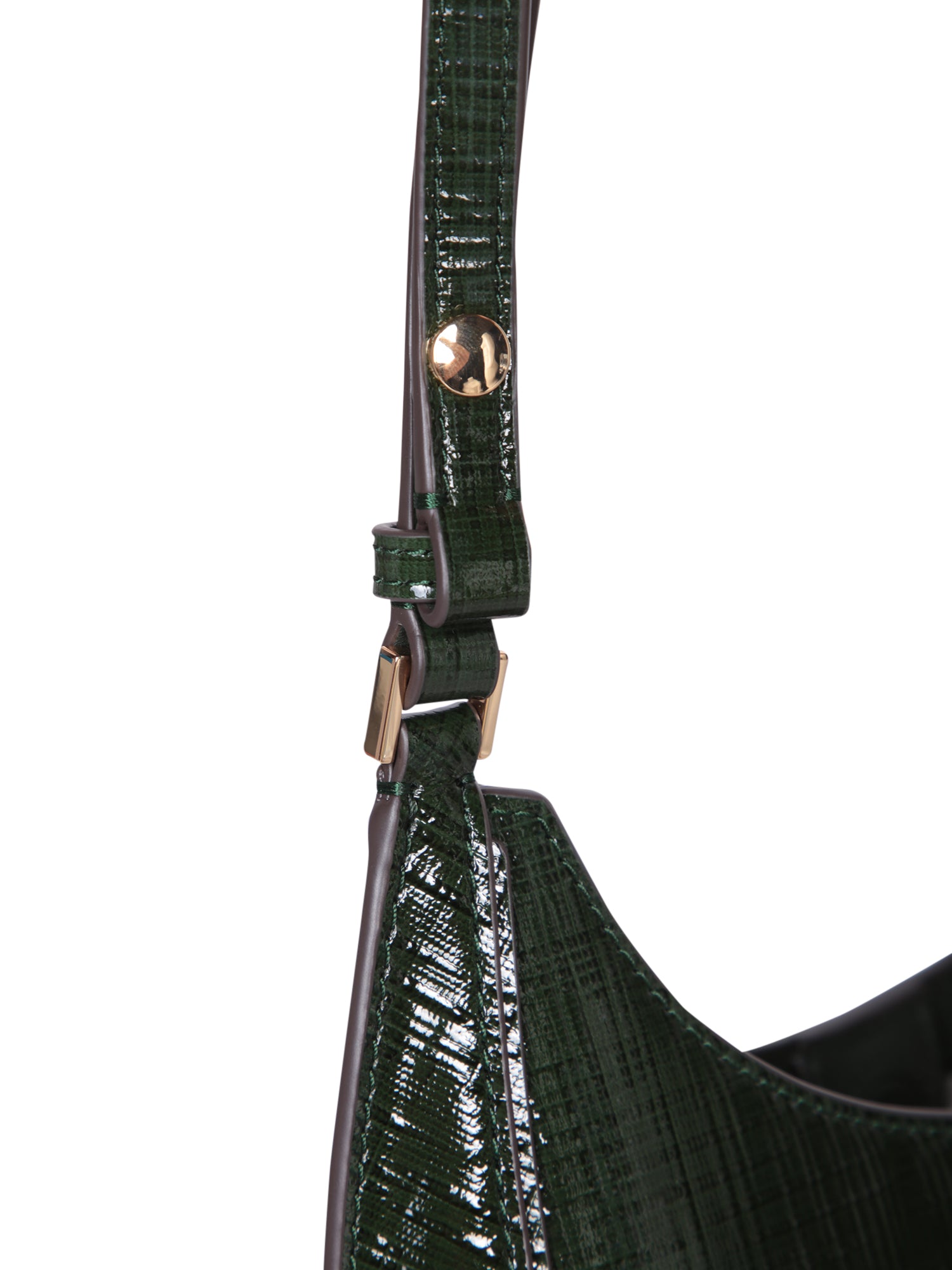 Crocodile texture leather shoulder bag. Snap button closure. Adjustable and detachable strap.