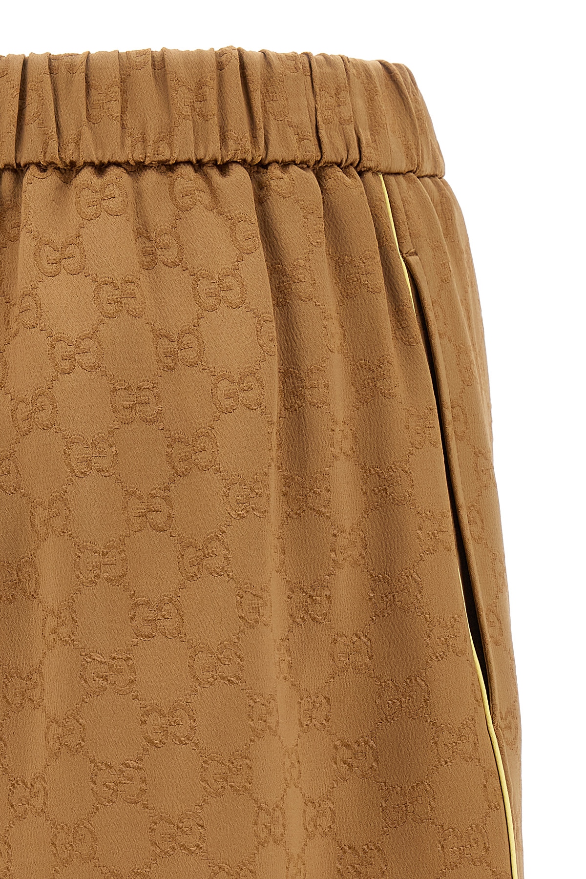 GG satin shorts with contrast piping, adjustable drawstring elastic waistband, zip and front button closure, pockets.