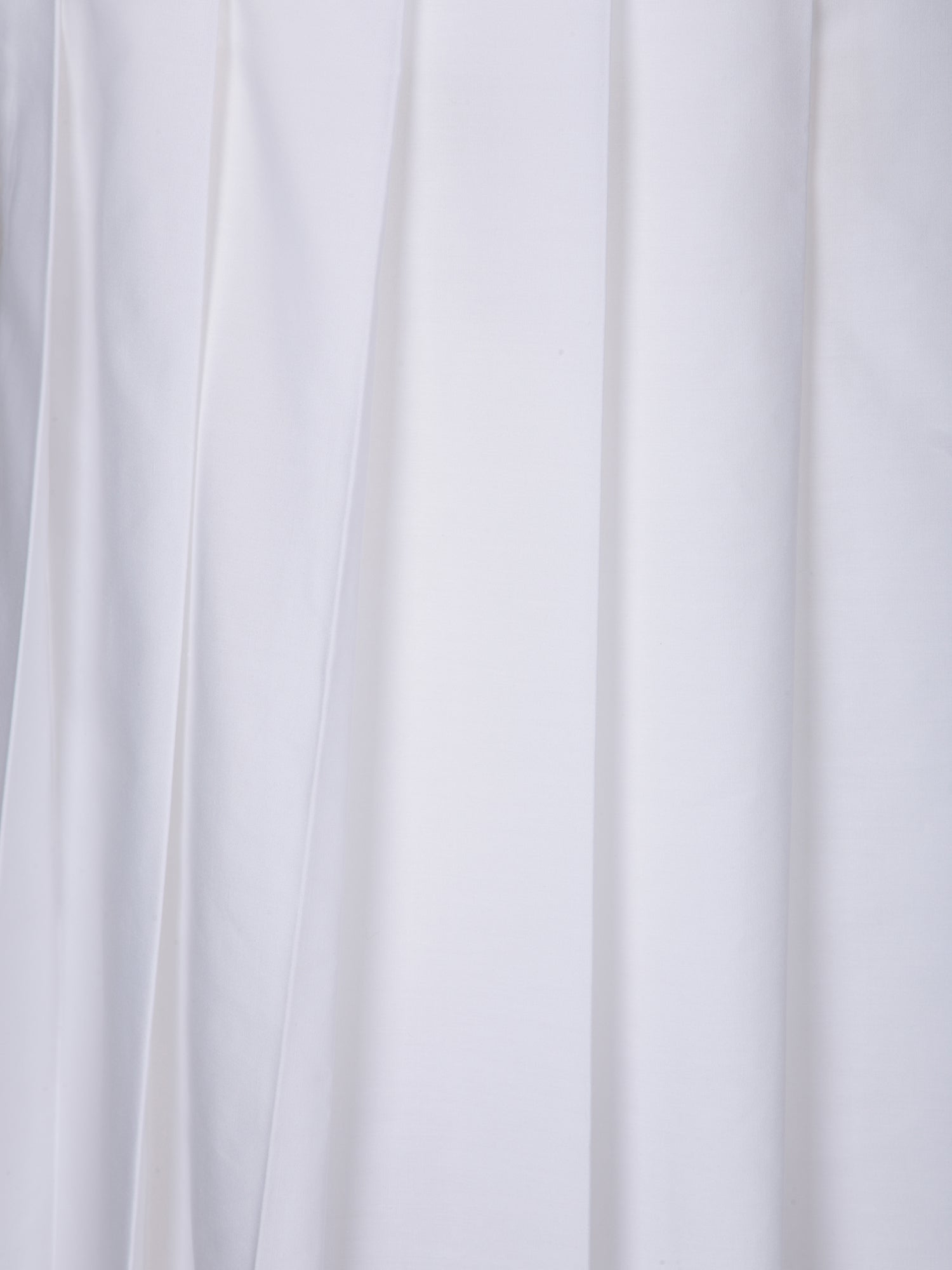 This white poplin top features light pleating that adds a touch of modern elegance. With delicate straps and a front pocket, it is perfect for a sophisticated and contemporary look.