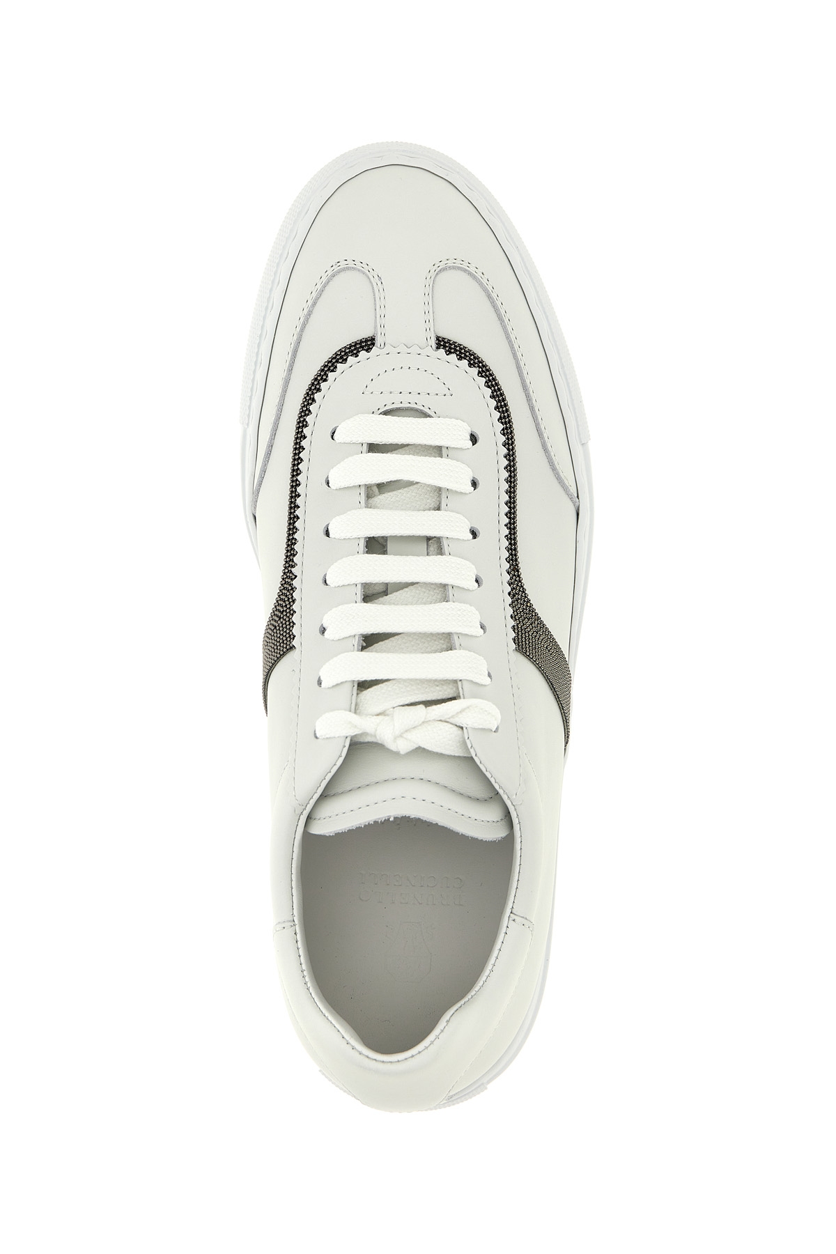 Leather sneakers with Precious Detail in Monile, laces, rubber sole.