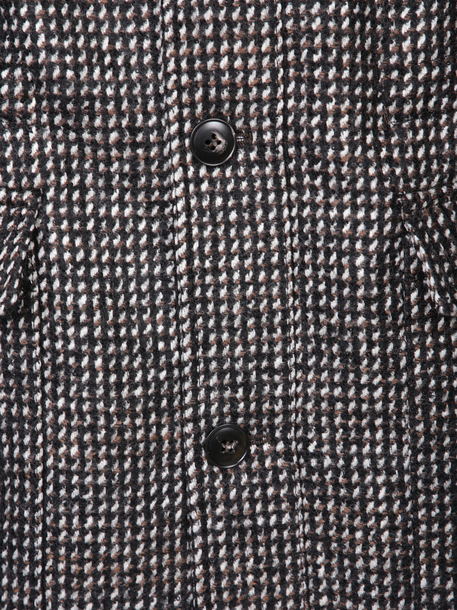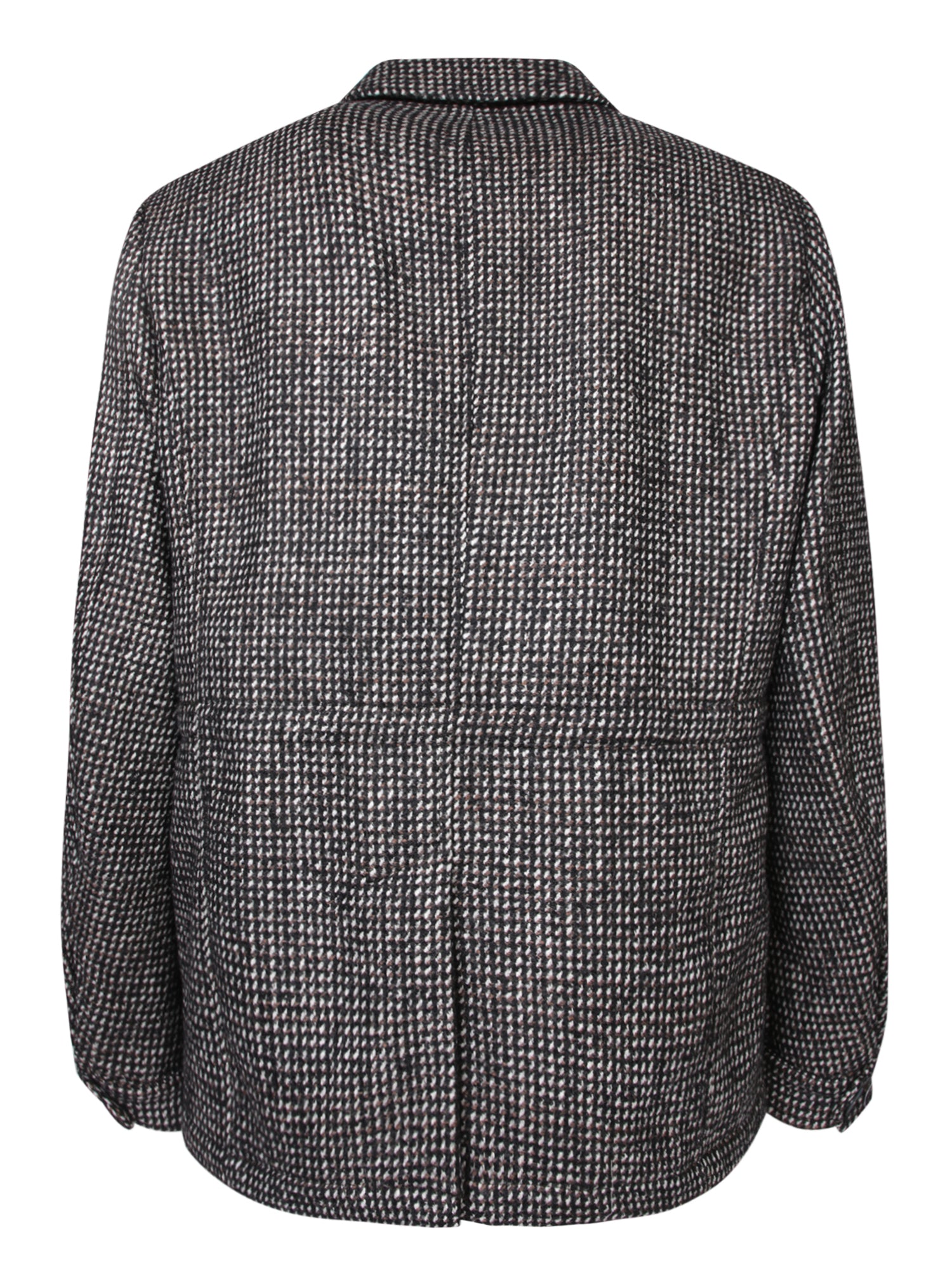 Long-sleeved jacket with four front flap pockets. Button front closure. Classic collar.