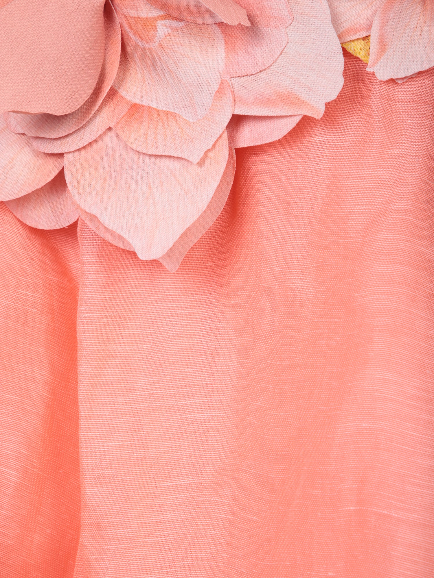 Strapless dress. Silk taffeta fabric. Embossed floral decorations.
