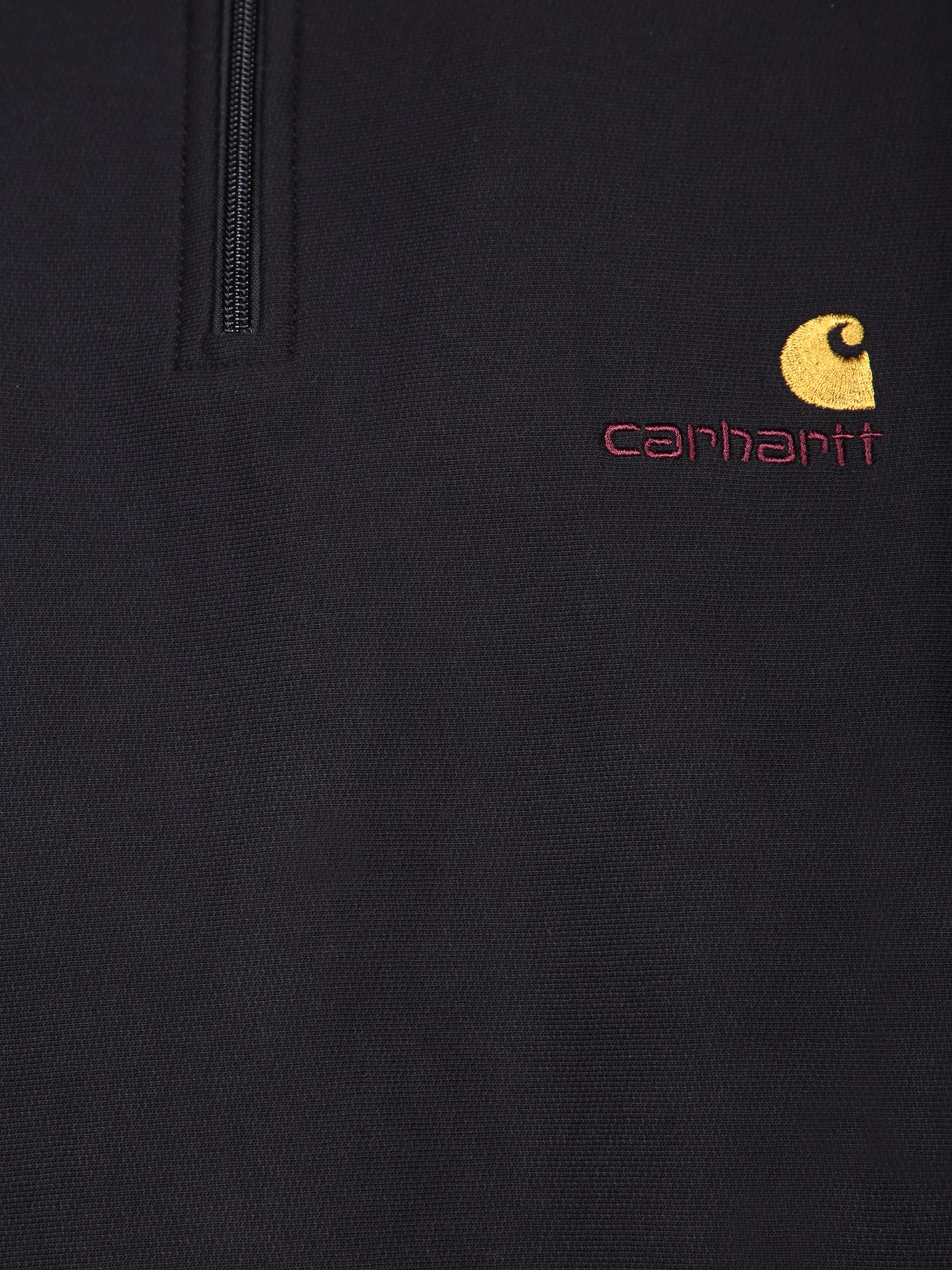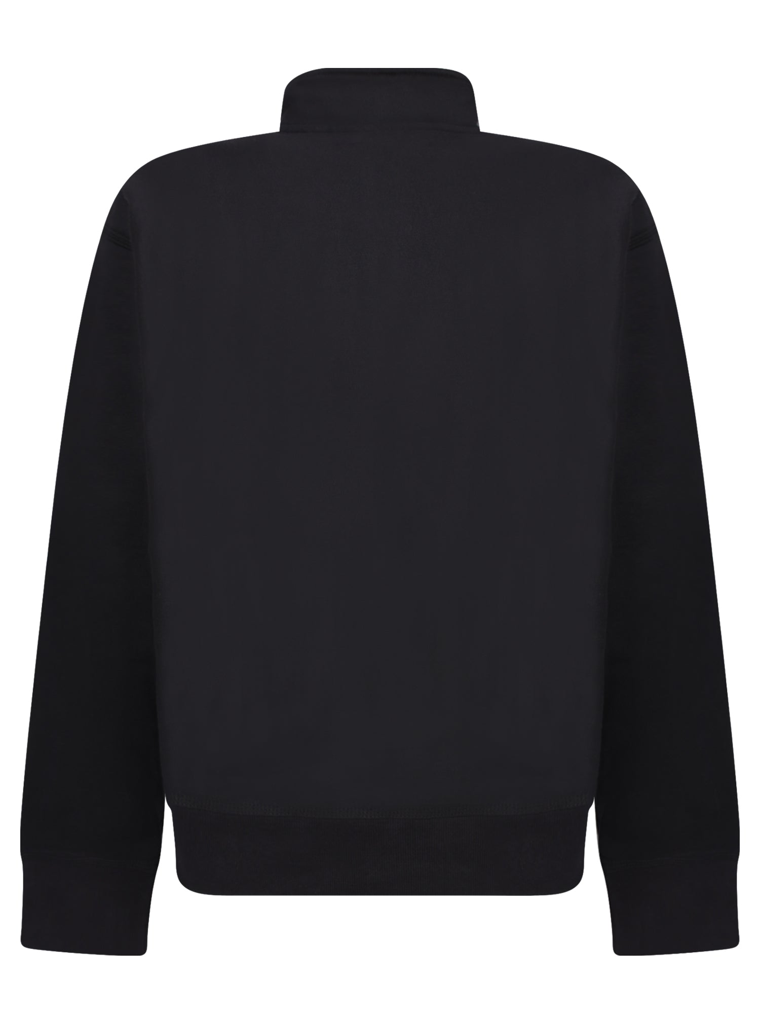 Black sweatshirt with half zipper. High collar. Embroidered logo on the chest.