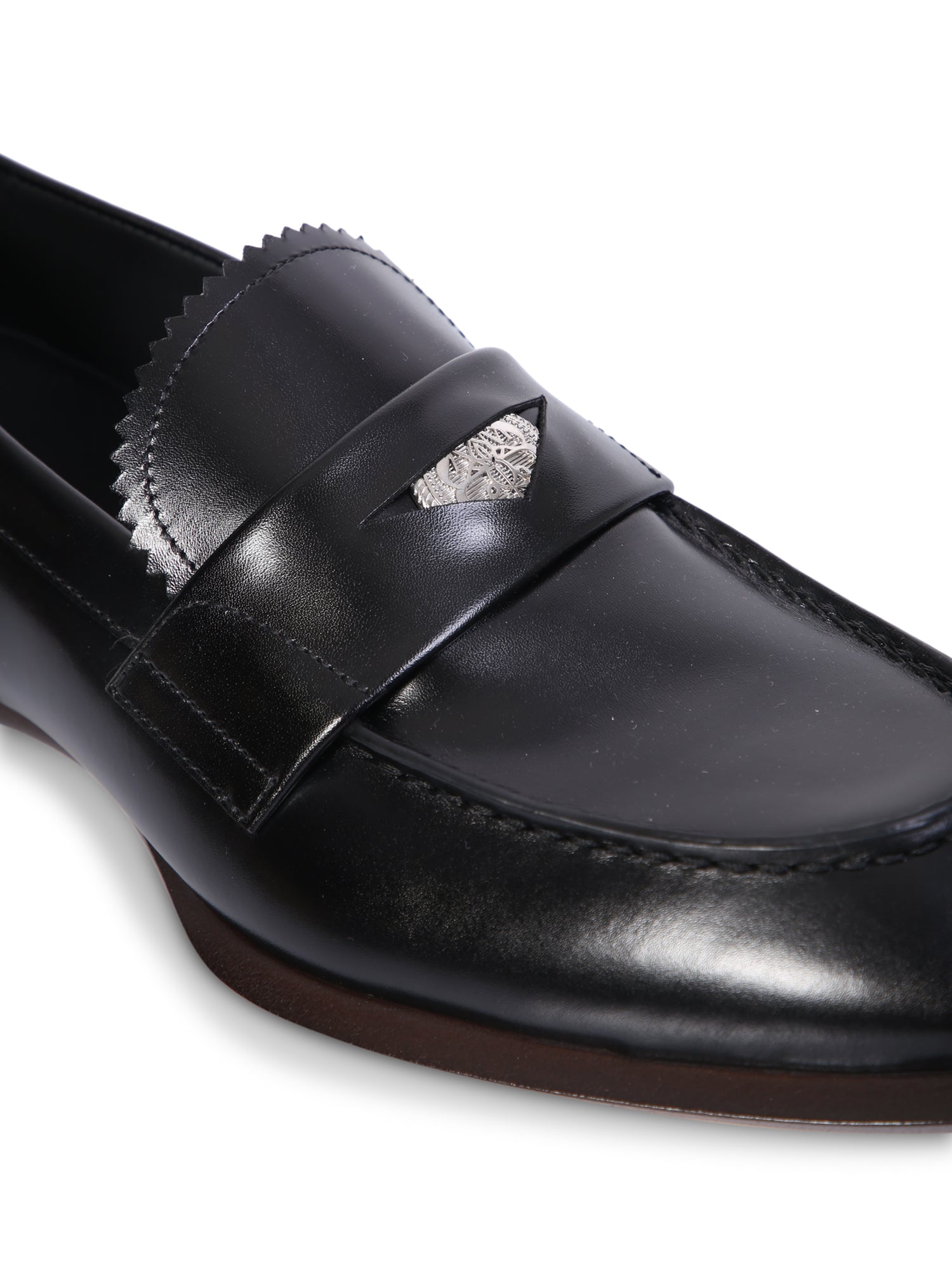 Loafers made in calfskin, with decorative strap with the seal of the brand. Zigzag edge and flat sole by Alexander McQueen