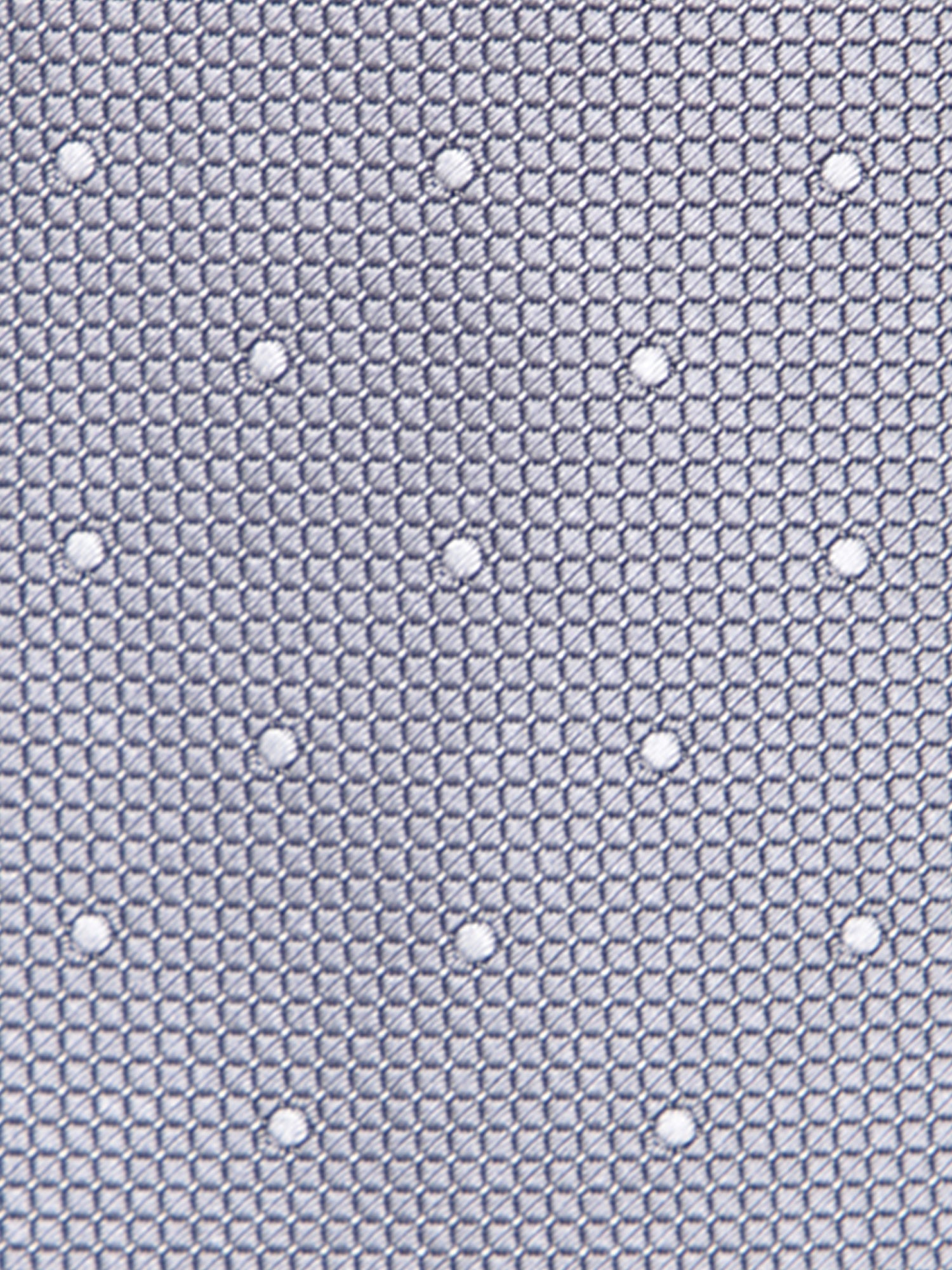 Silver tie with micro-dot pattern. 8cm width. High-quality finish.
