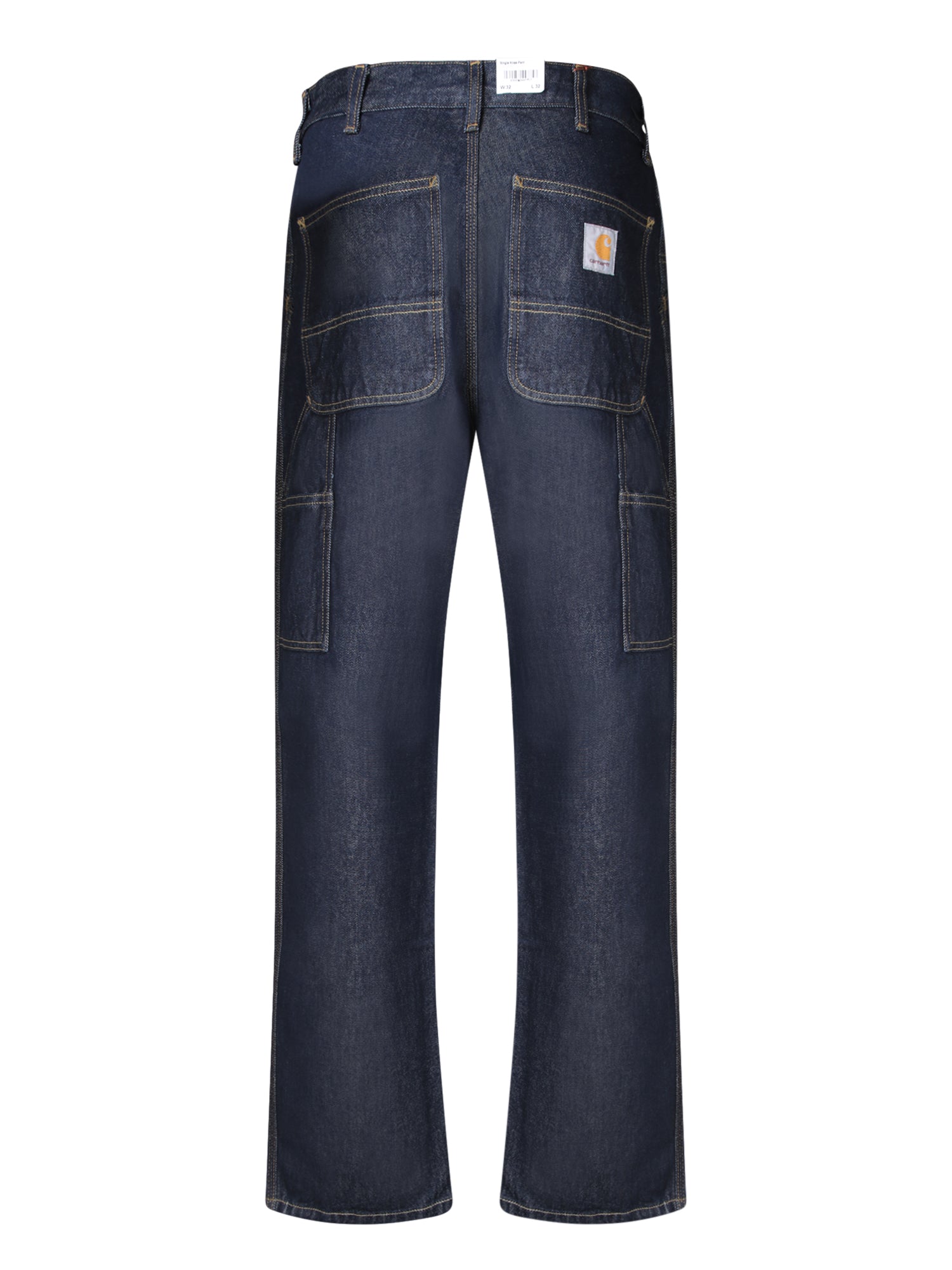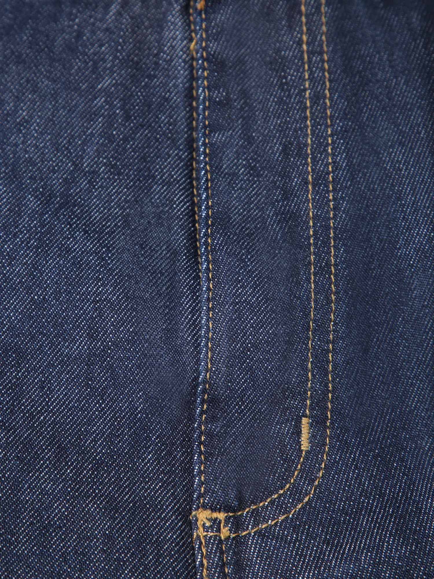 Rigid denim jeans. Regular waist with belt loops. Button and zipper closure.