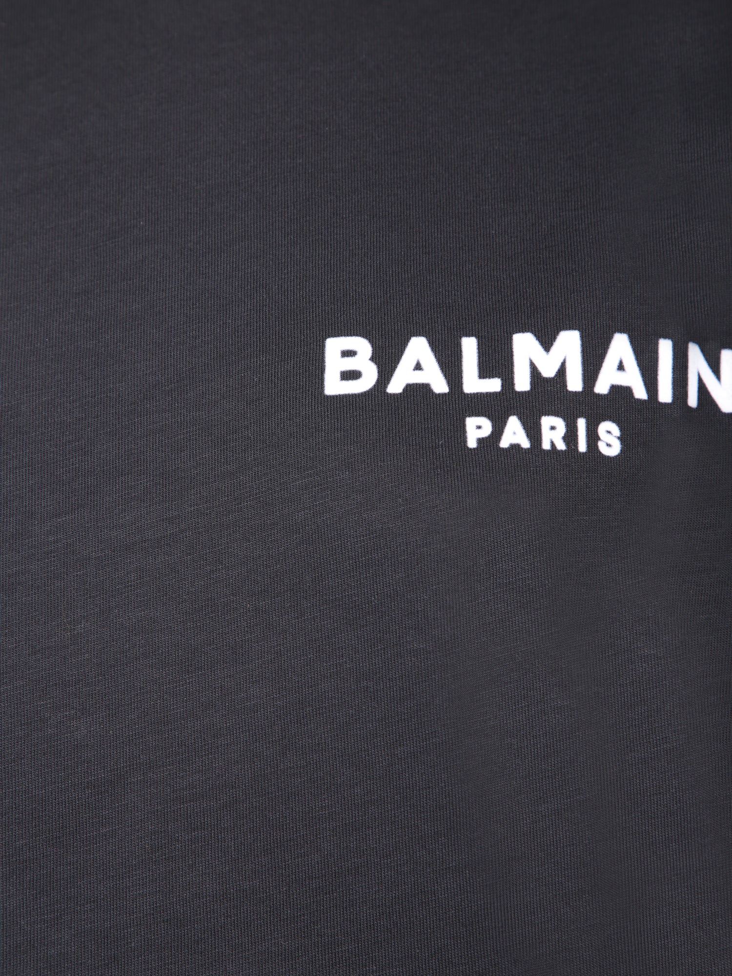Short sleeves, crew neck, contrasting Balmain Paris logo on the chest.