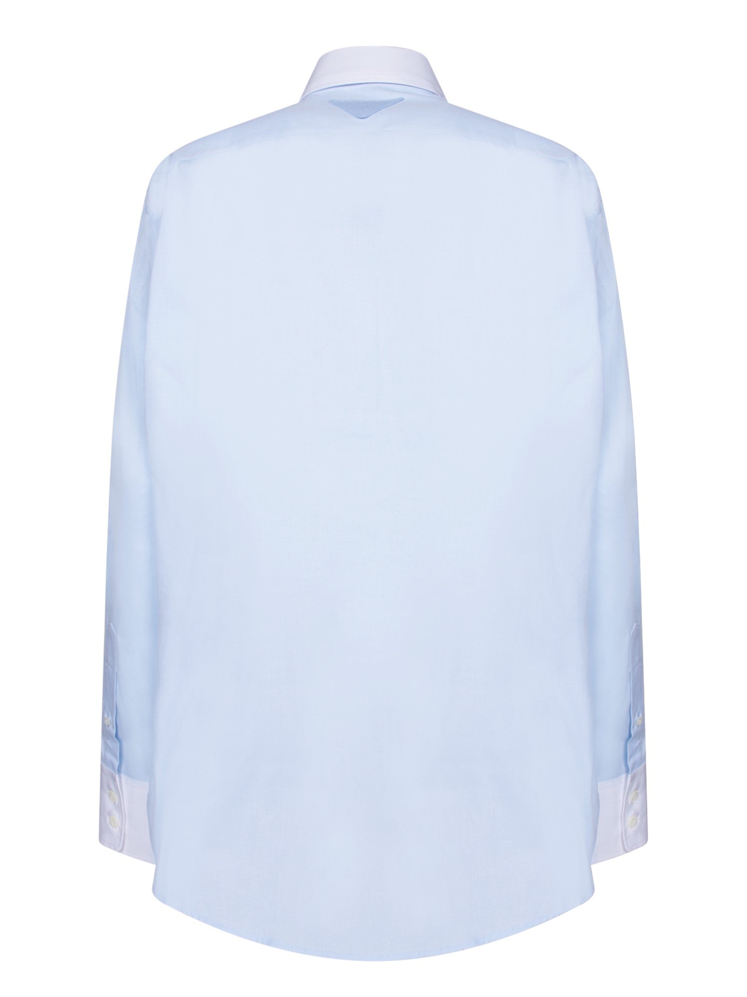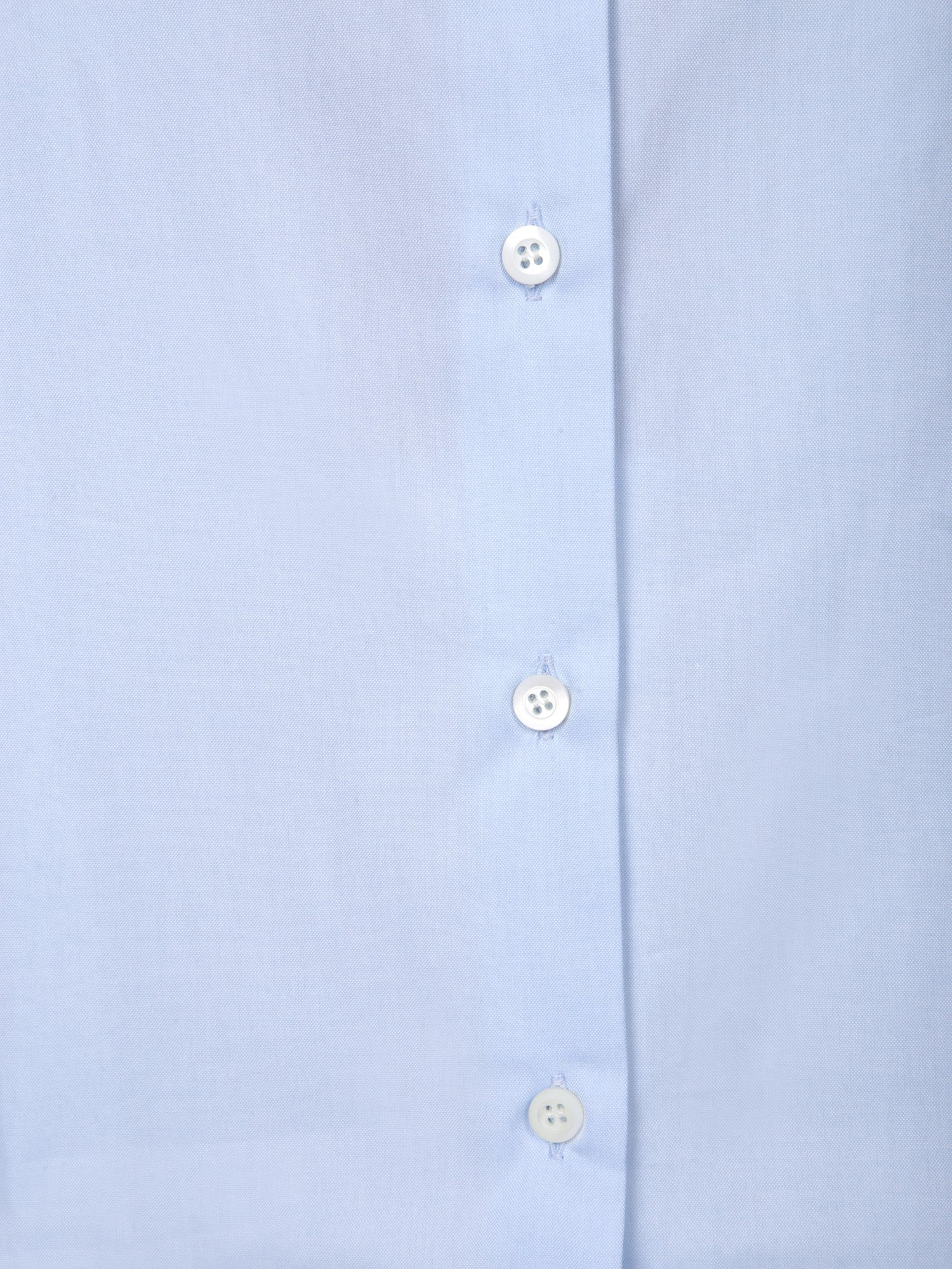Cotton poplin shirt. Long sleeves with cuffs. Classic collar. Front button closure.