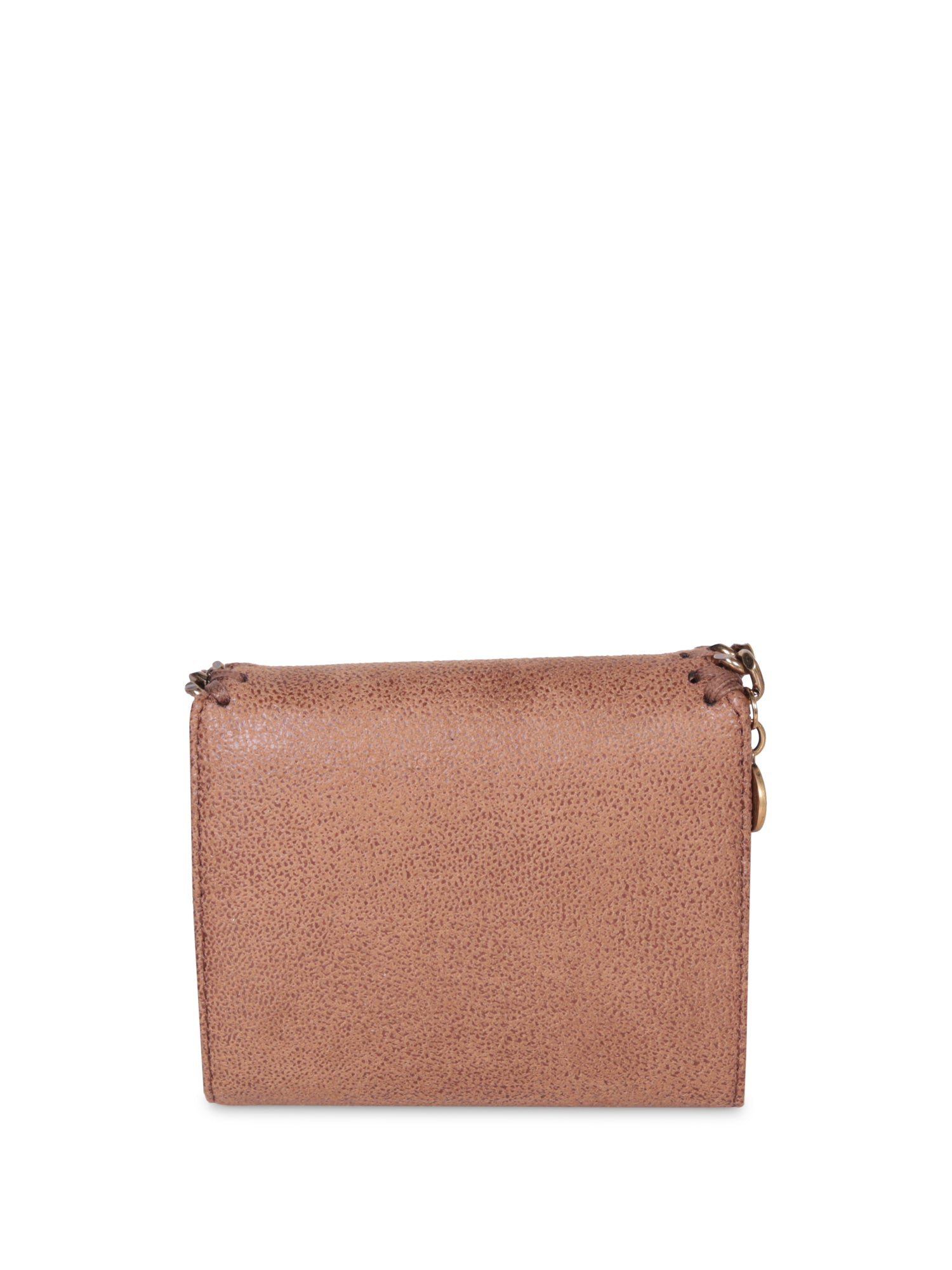 Compact wallet with flap closure. Antique gold metal finishes. Woven design.