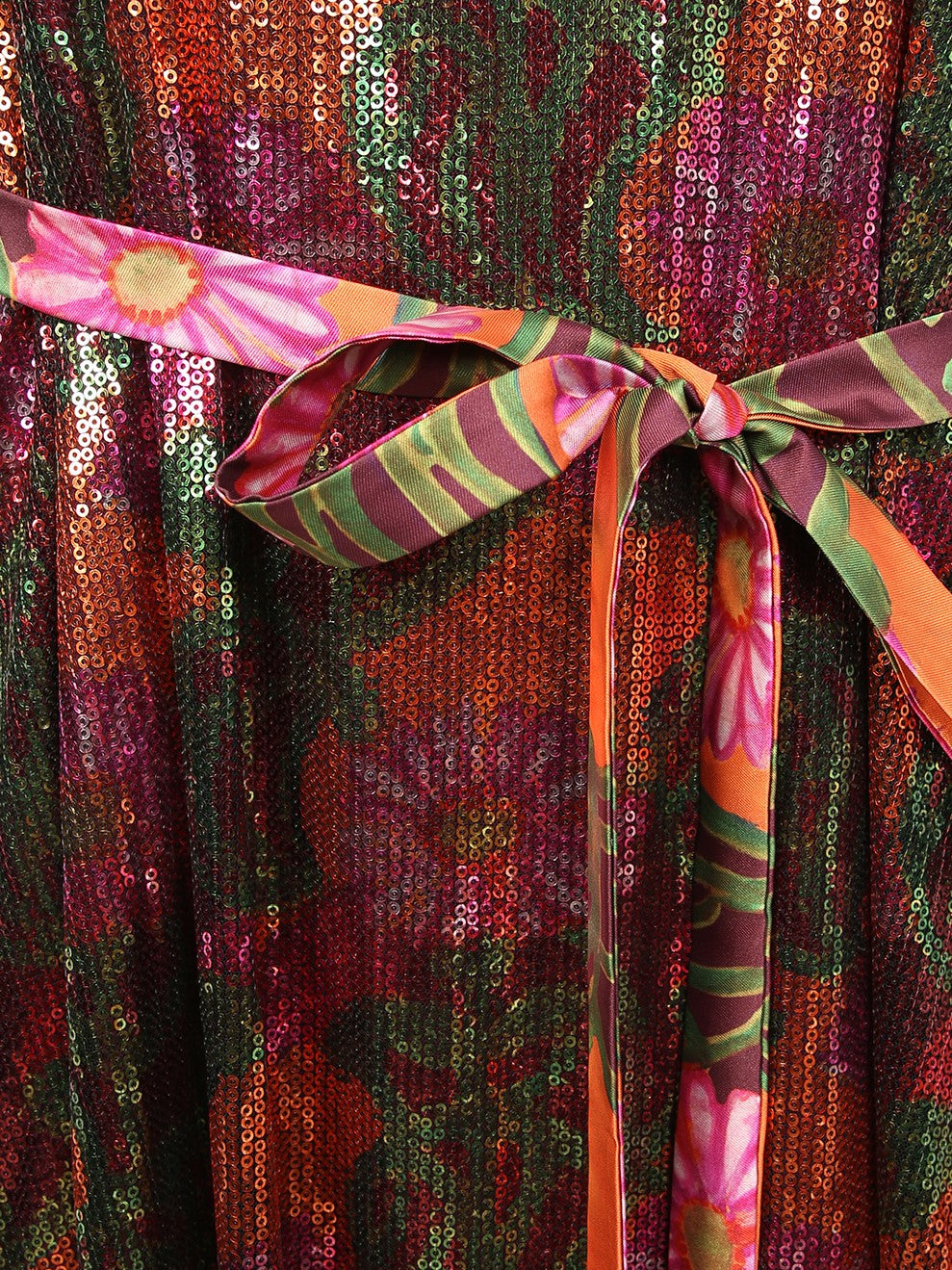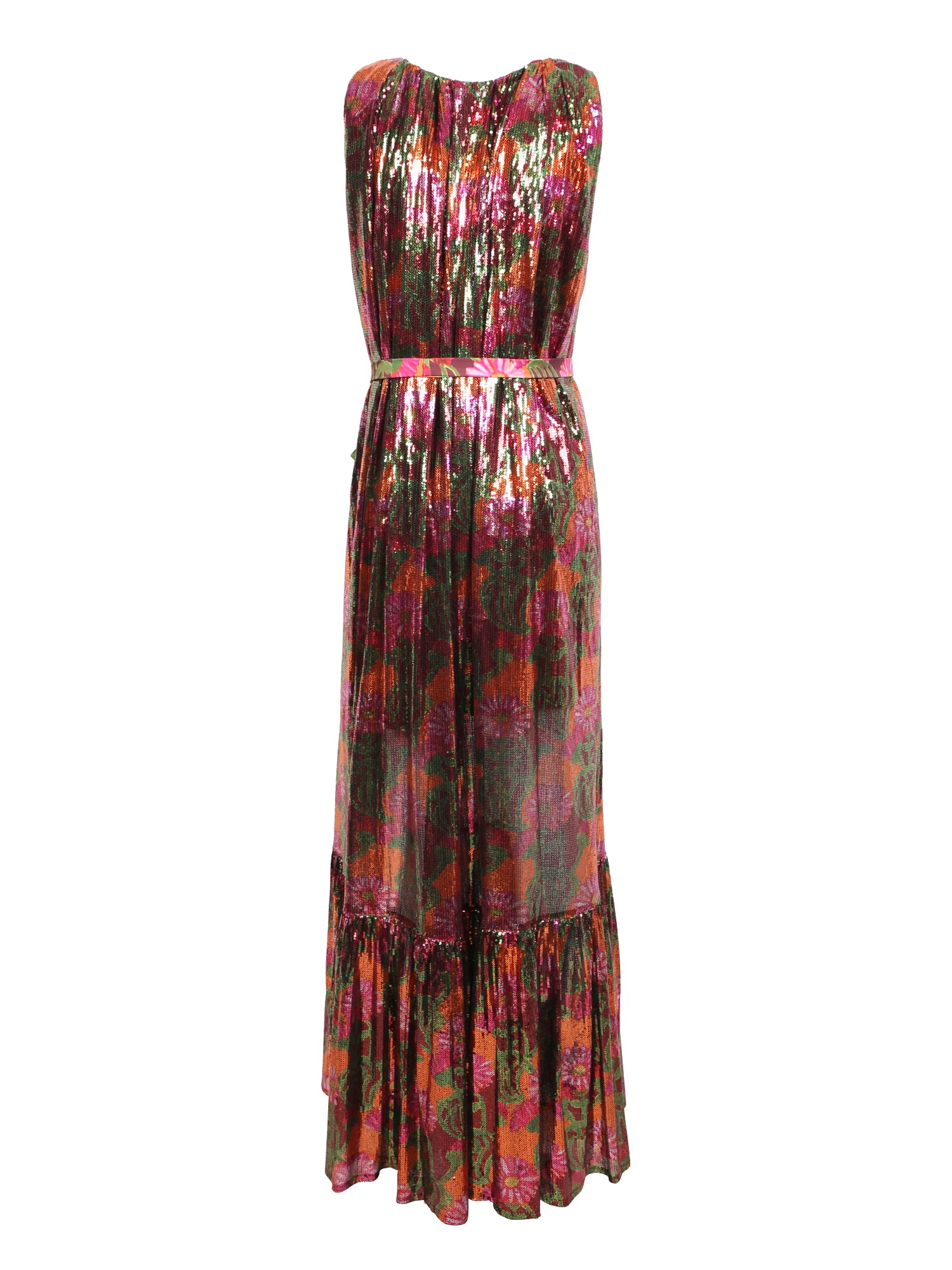 Soir?? long dress by La DoubleJ. Covered with sequins and an all-over print, this garment has an inimitable and bold design