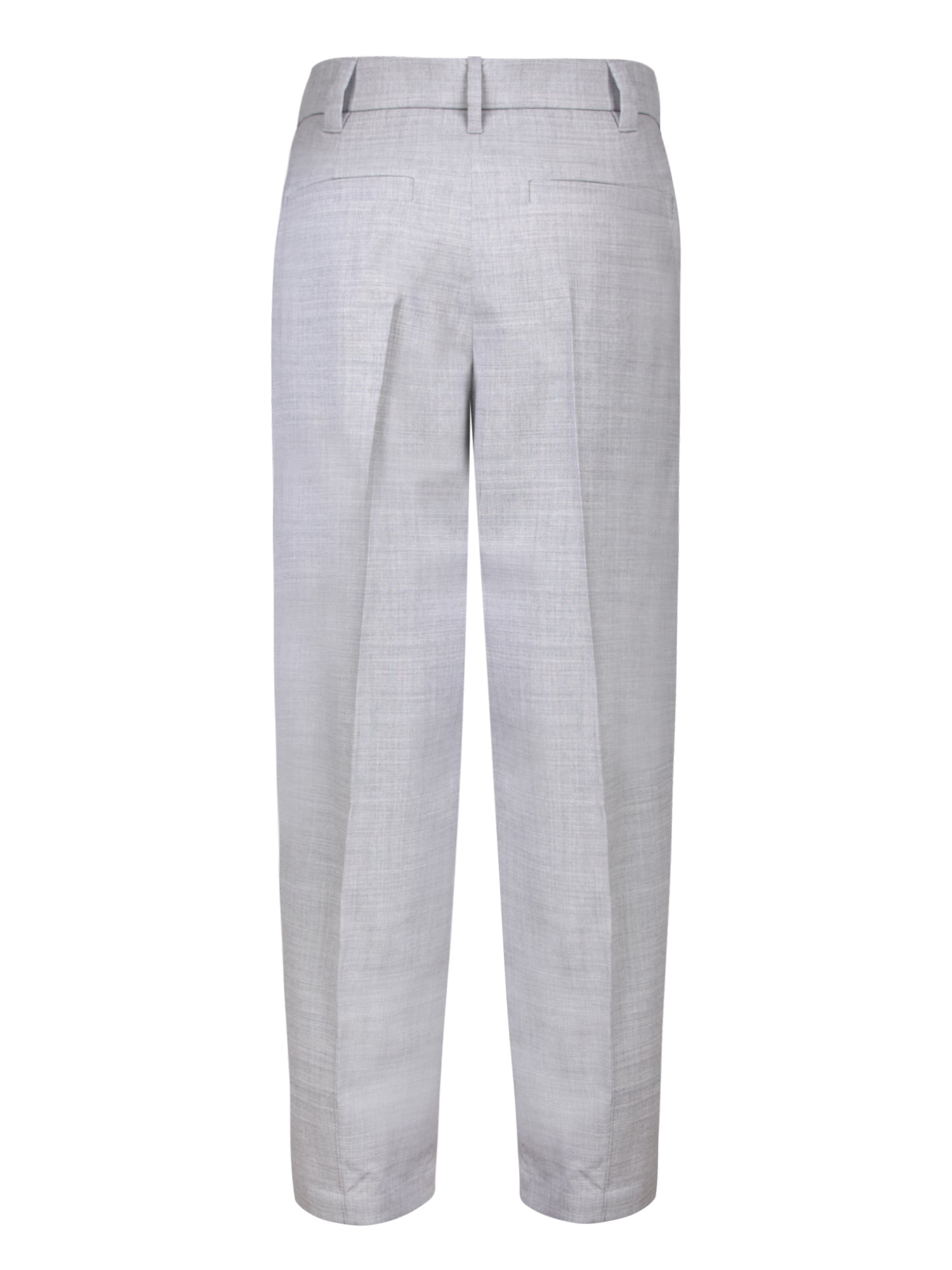 Lightweight fabric trousers, tailored cut, zip and button closure, belt loops.