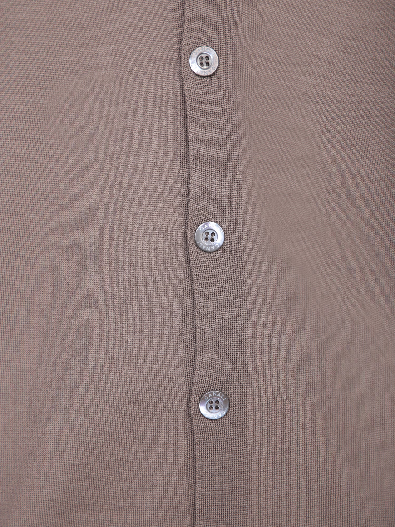 V-neck cardigan. Front button closure. Ribbed cuffs and hem.