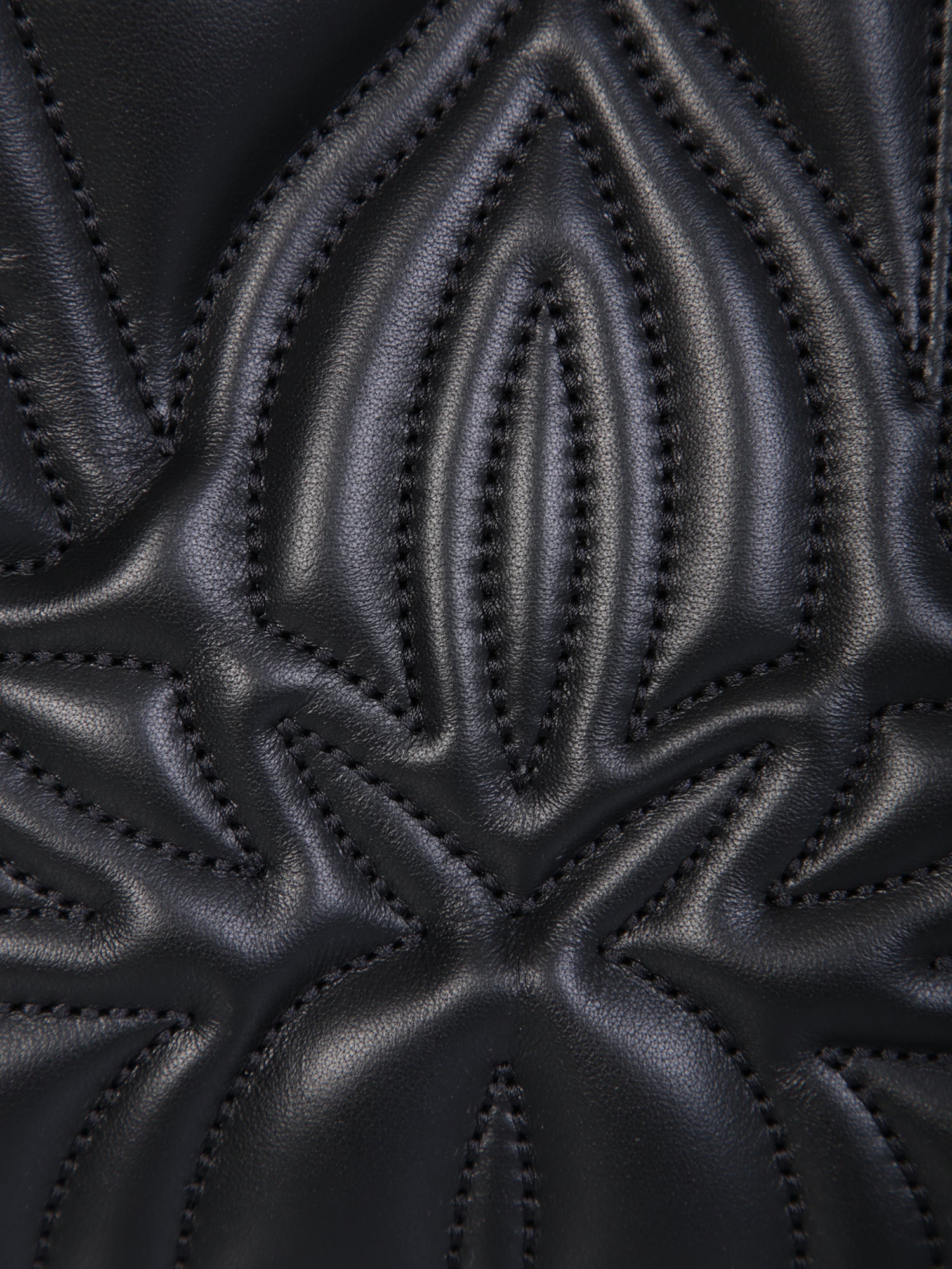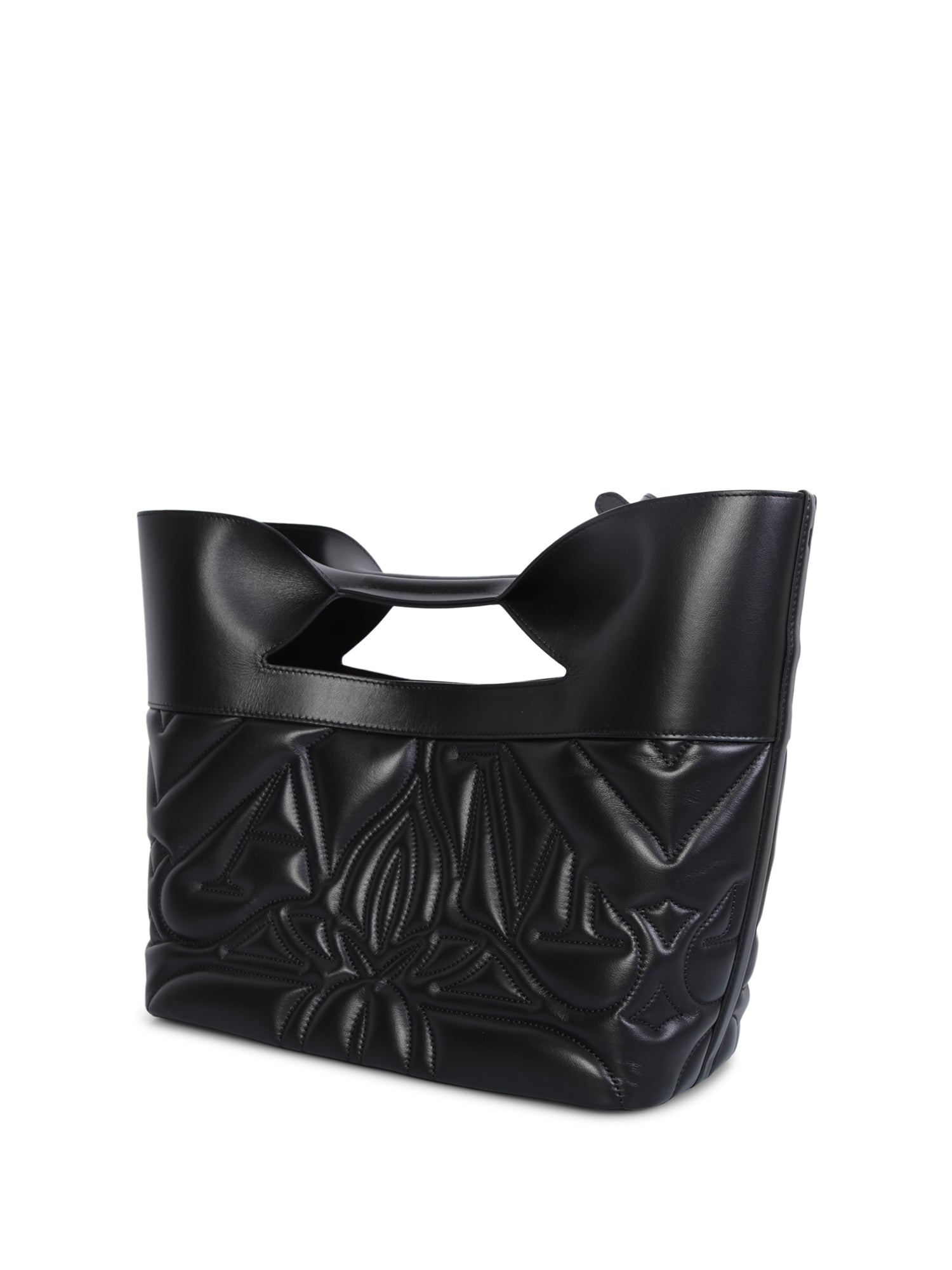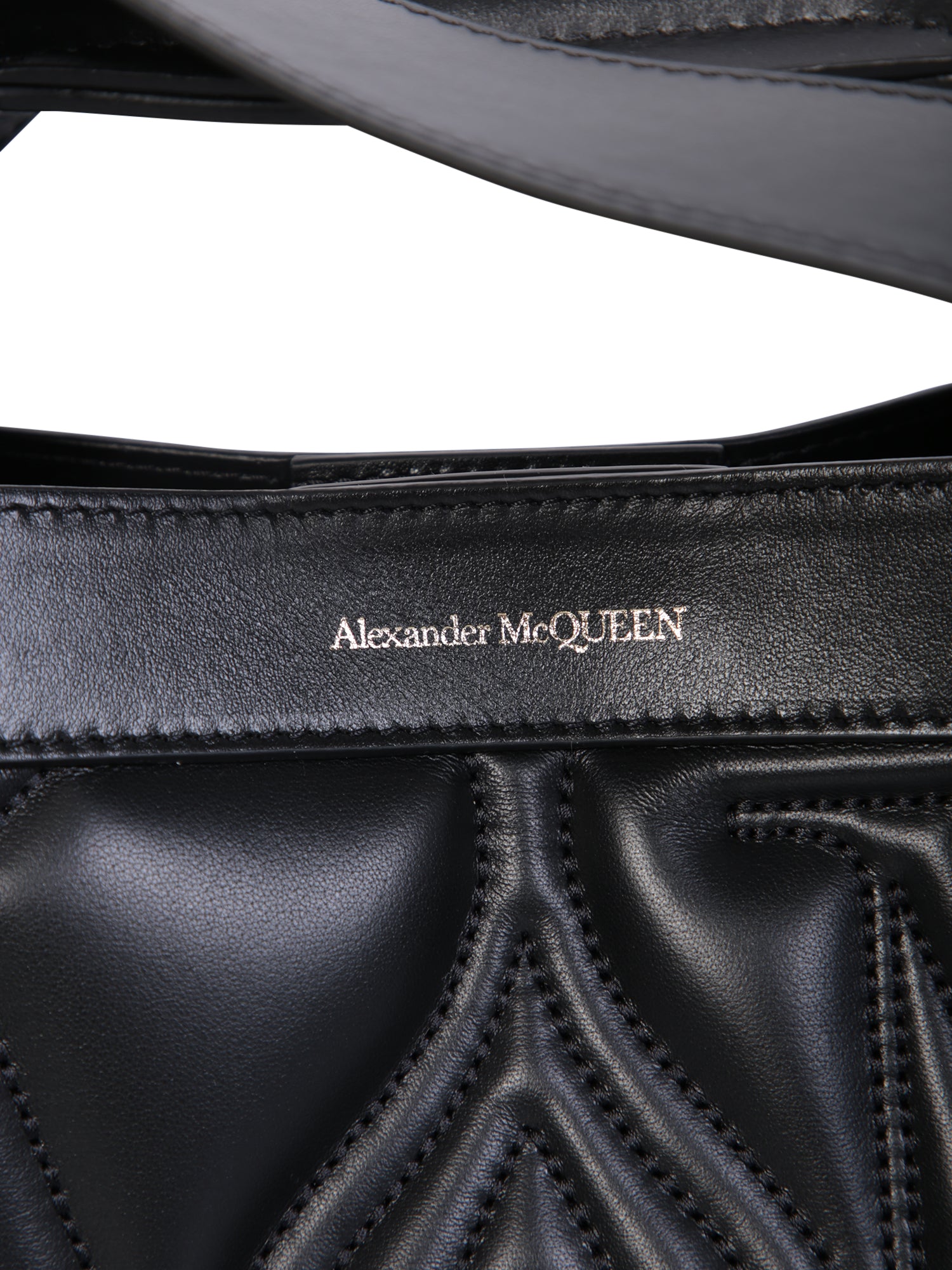This Alexander McQueen bag boasts a structured silhouette defined by sharp lines