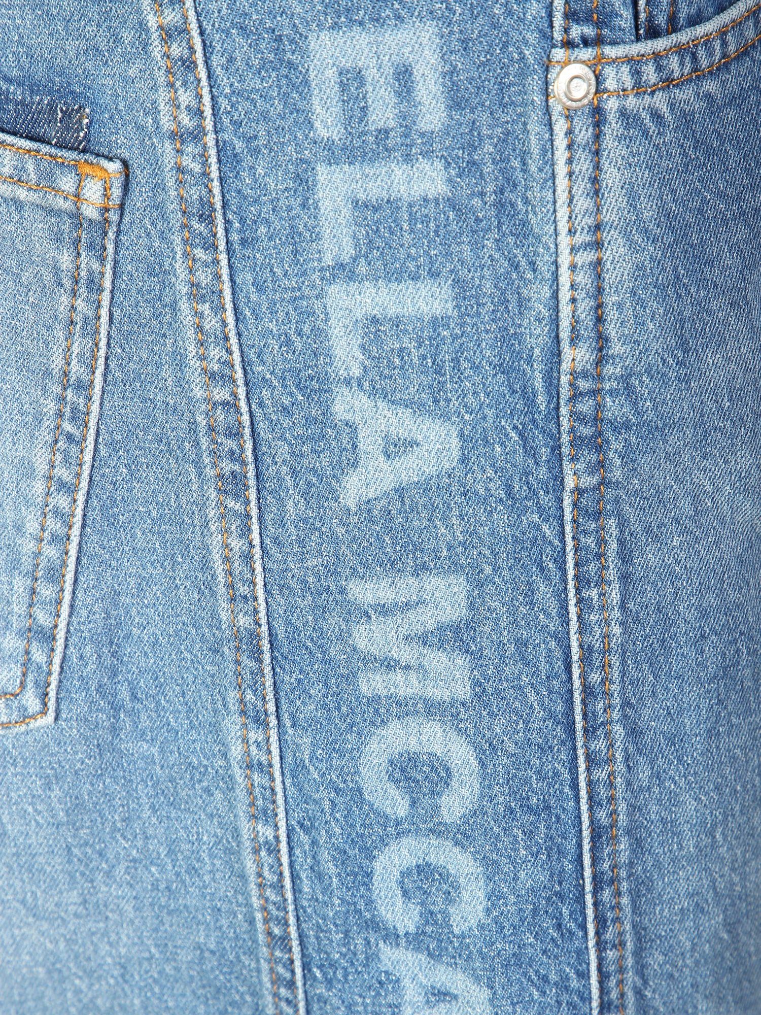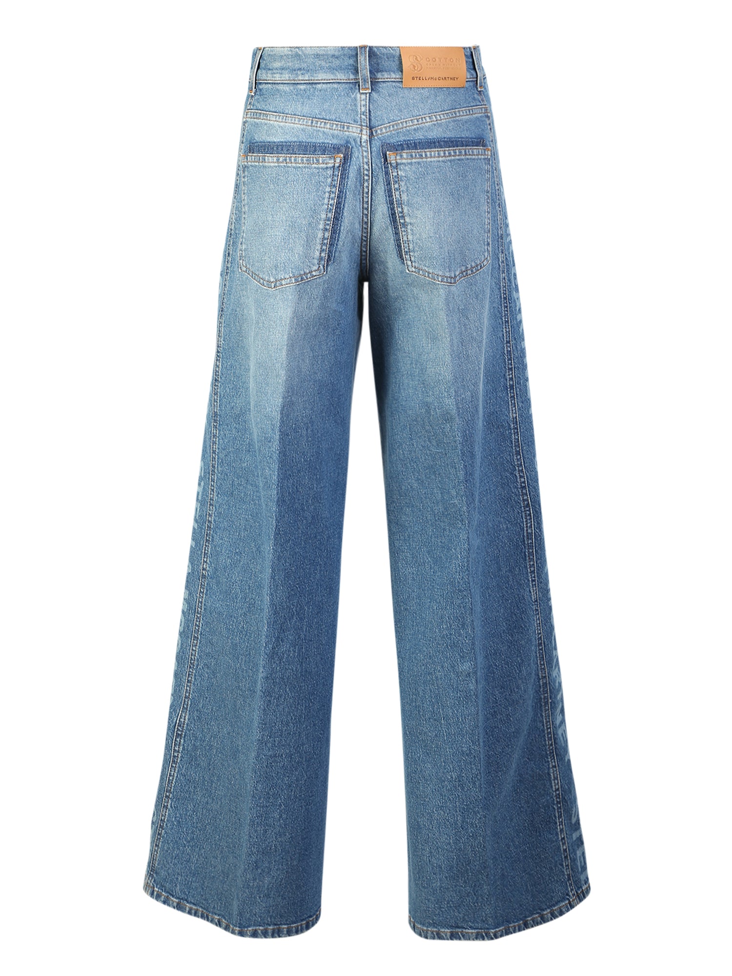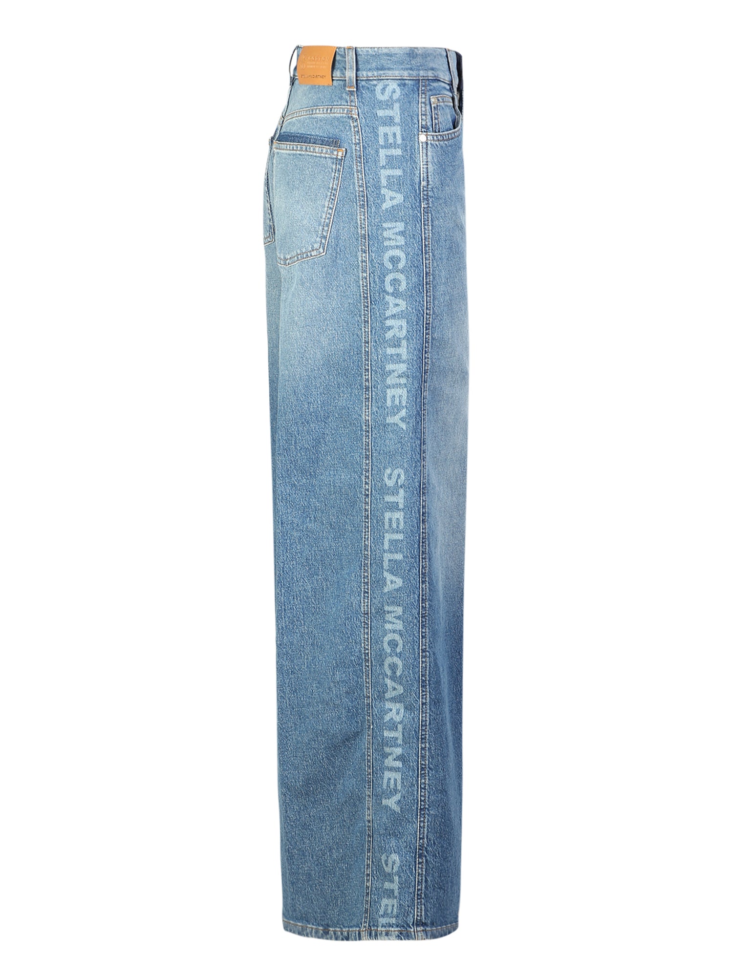 These wide-leg jeans by Stella McCartney with logo printed on the sides are produced in Italy, always following the ethics of sustainability