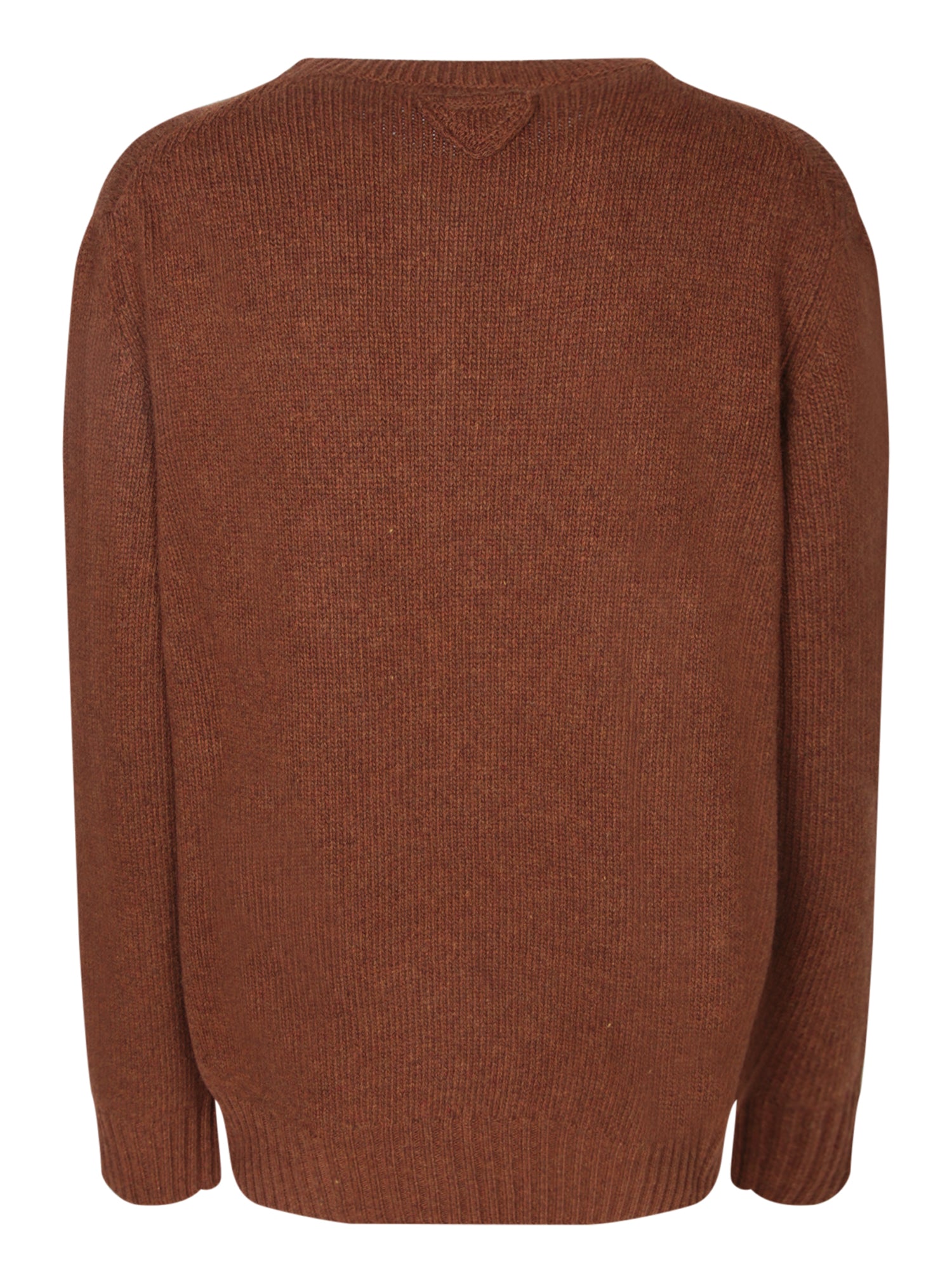 Cashmere and wool sweater. Tobacco color. Crew neck. Long sleeves. Ribbed trim.