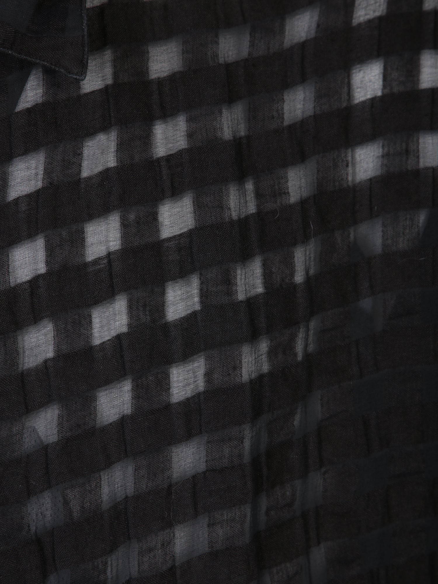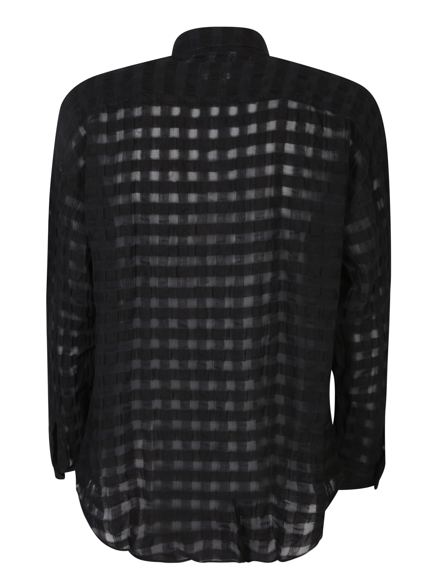 Long sleeves. Translucent checkered fabric. Classic collar.
