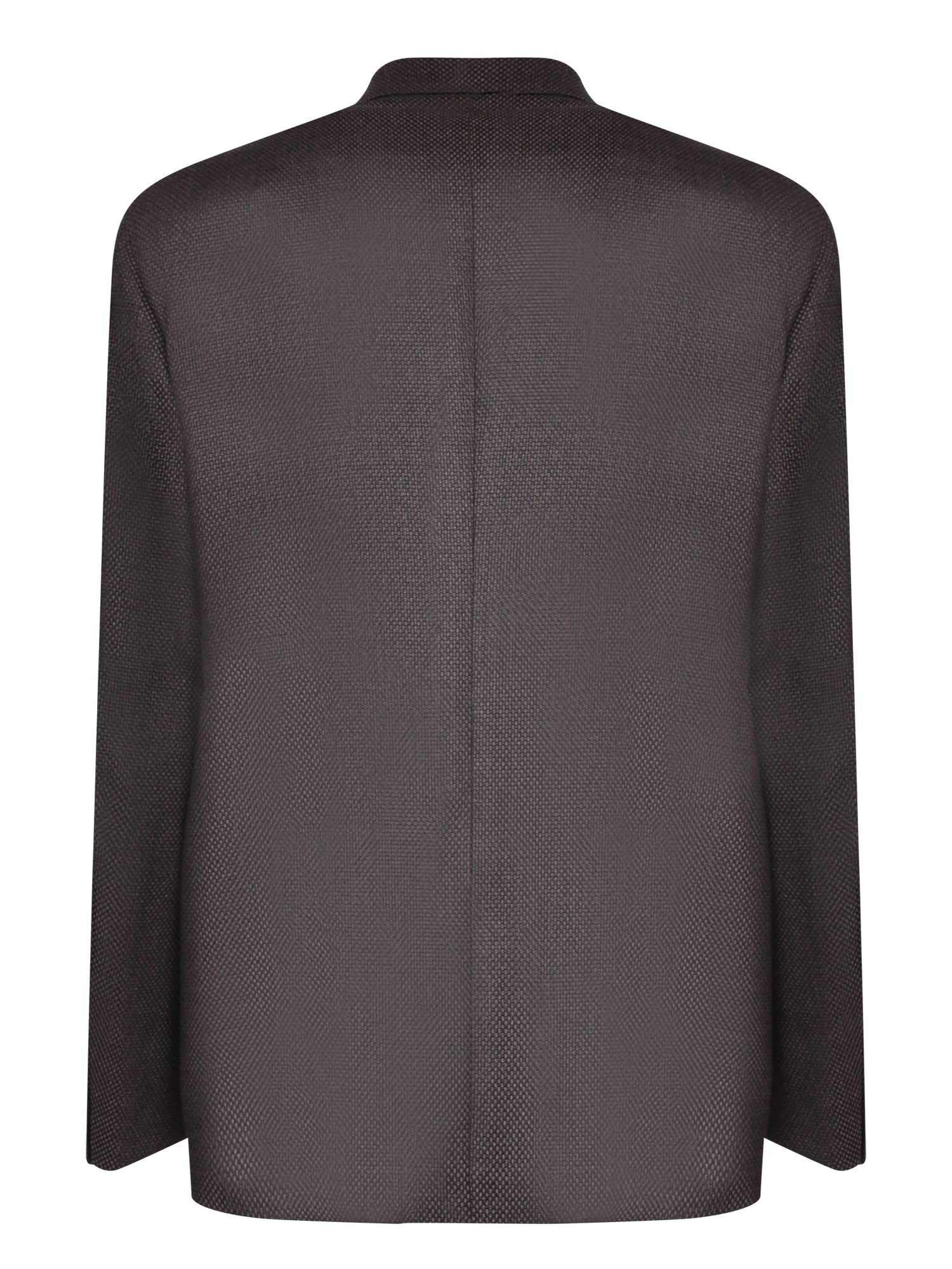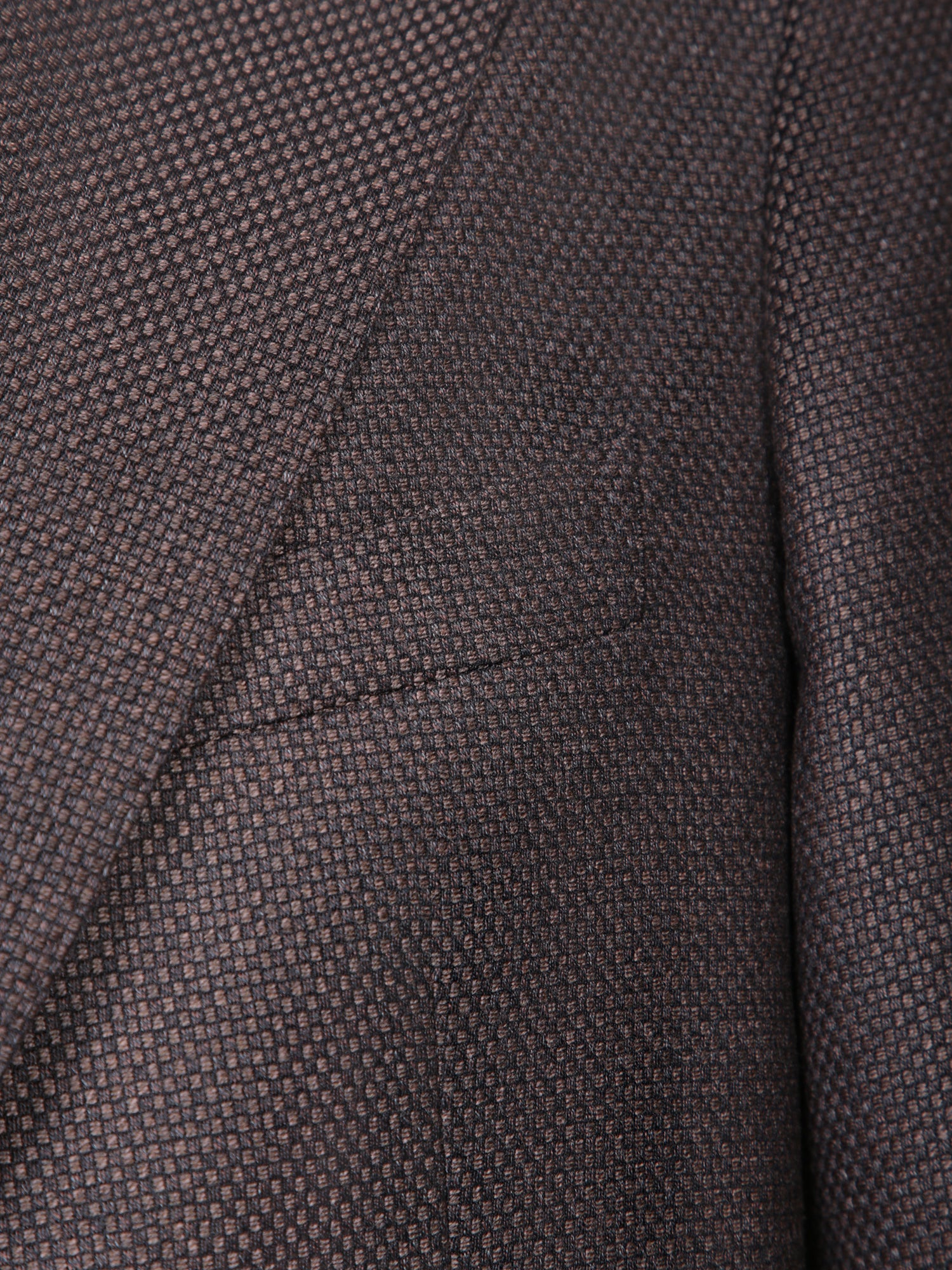 Hopsack fabric jacket with classic lapels, two-button closure, and welt pockets.