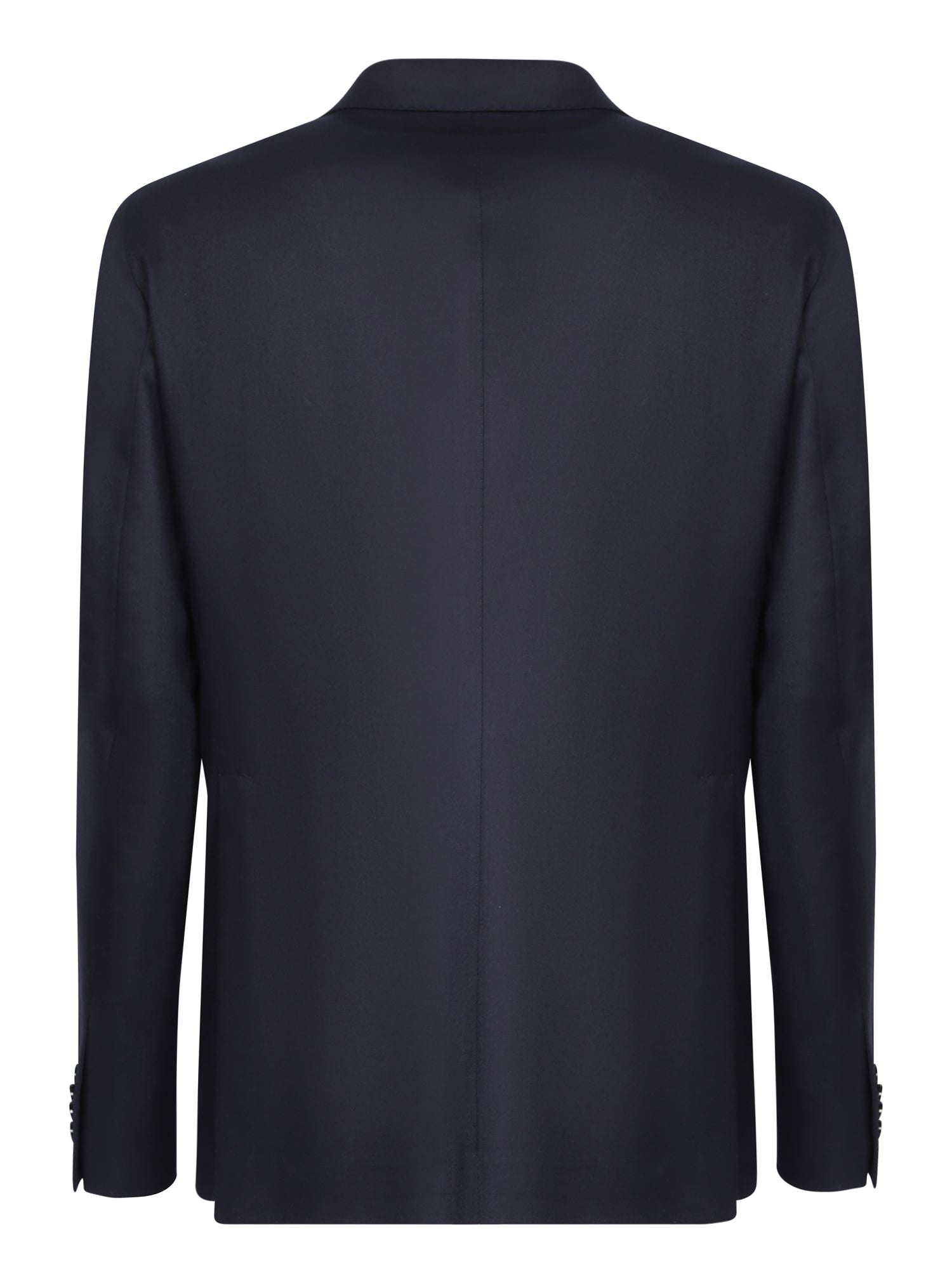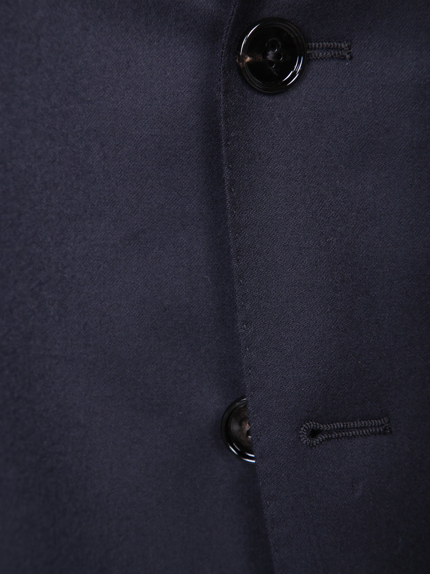 Silk and wool blend jacket. Blue color. Two-button closure and jetted pockets.