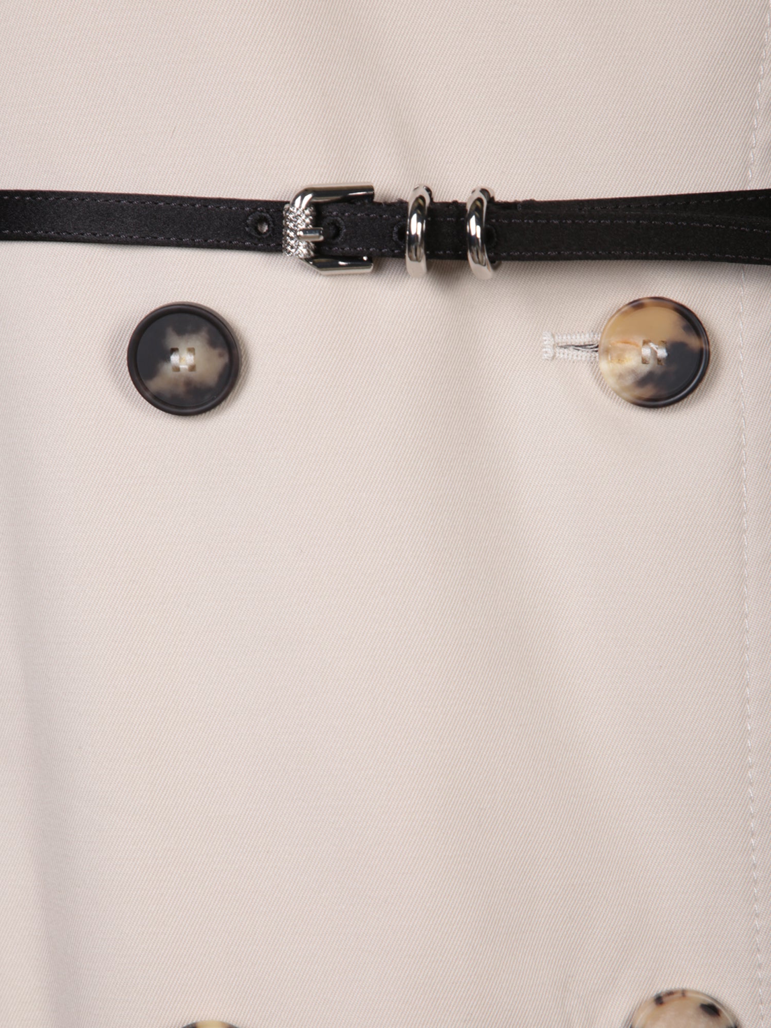 Light twill trench coat. Double-breasted design with an adjustable belt. Button closure.
