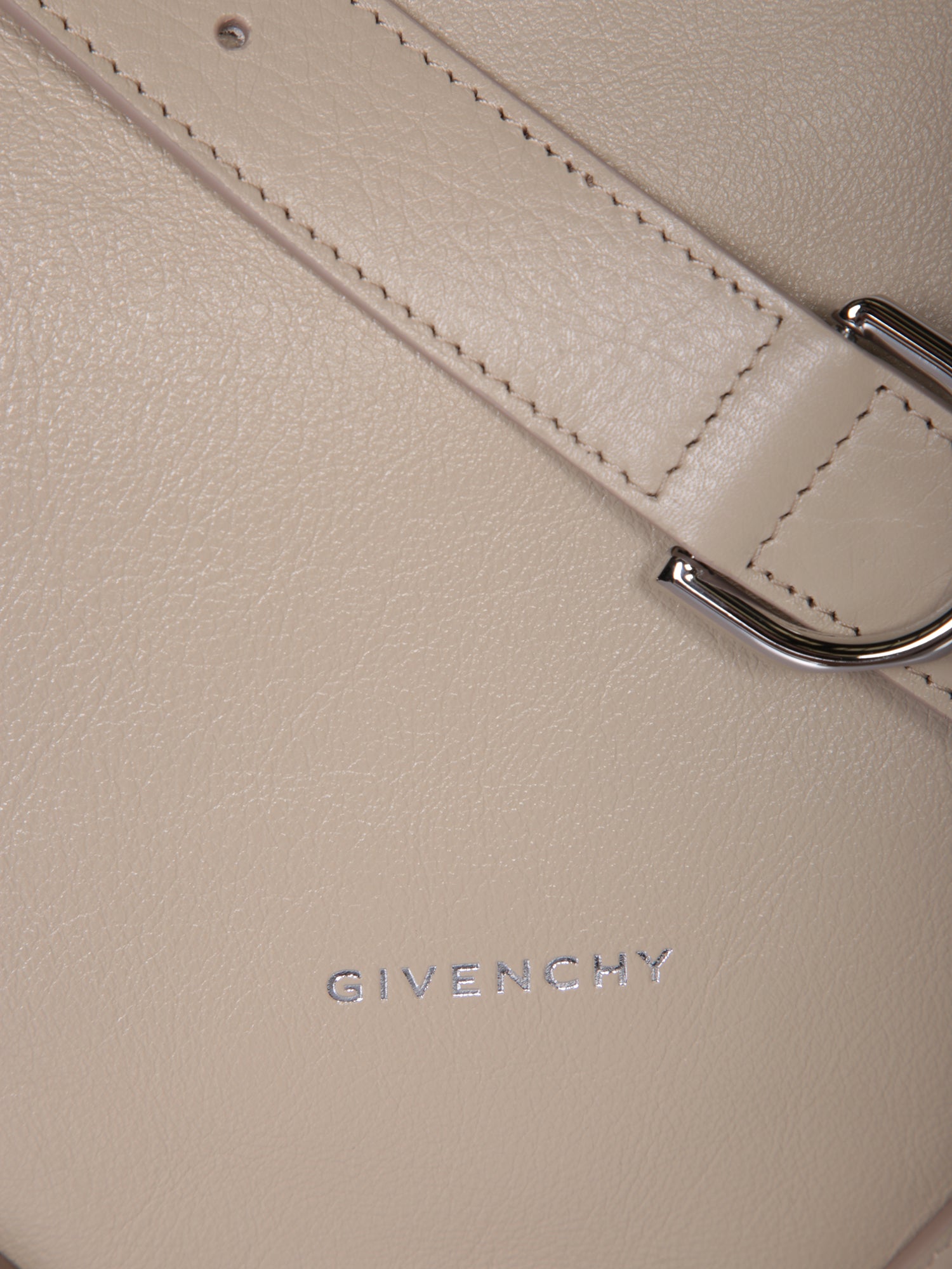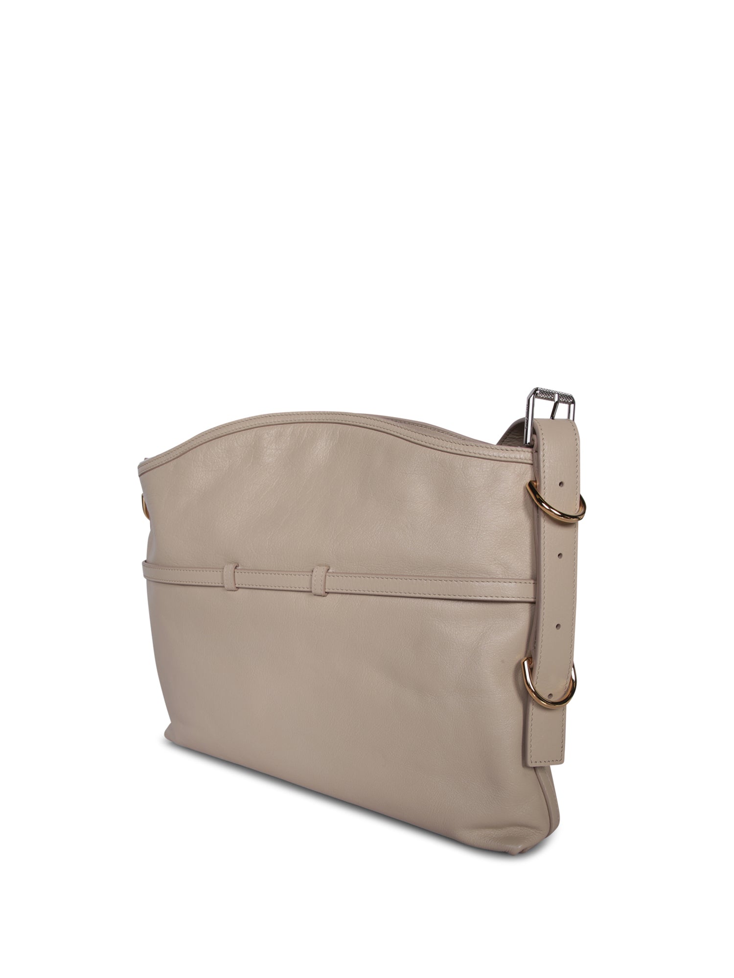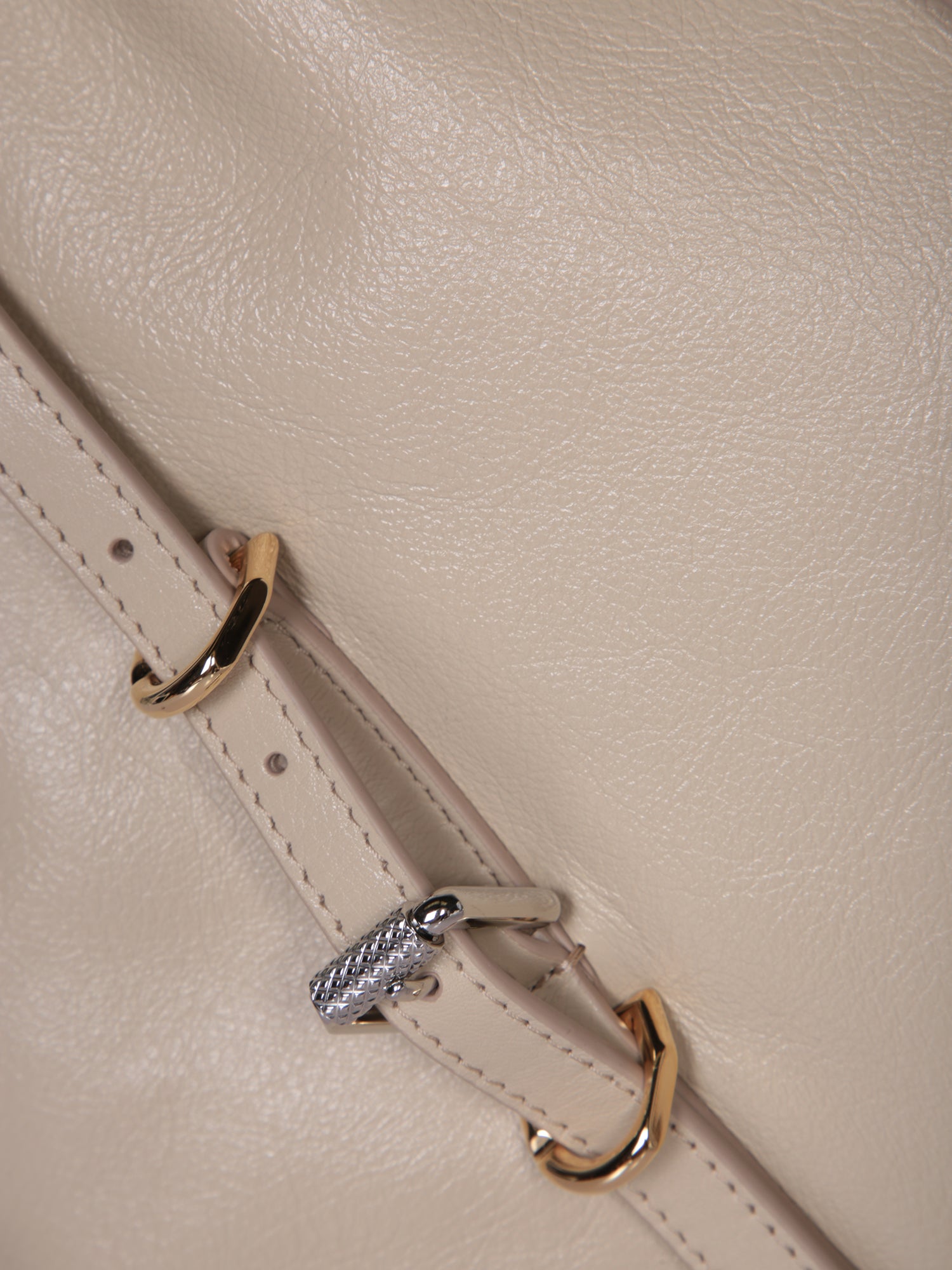 Smooth leather shoulder bag. Silver-tone hardware. Top zip closure.