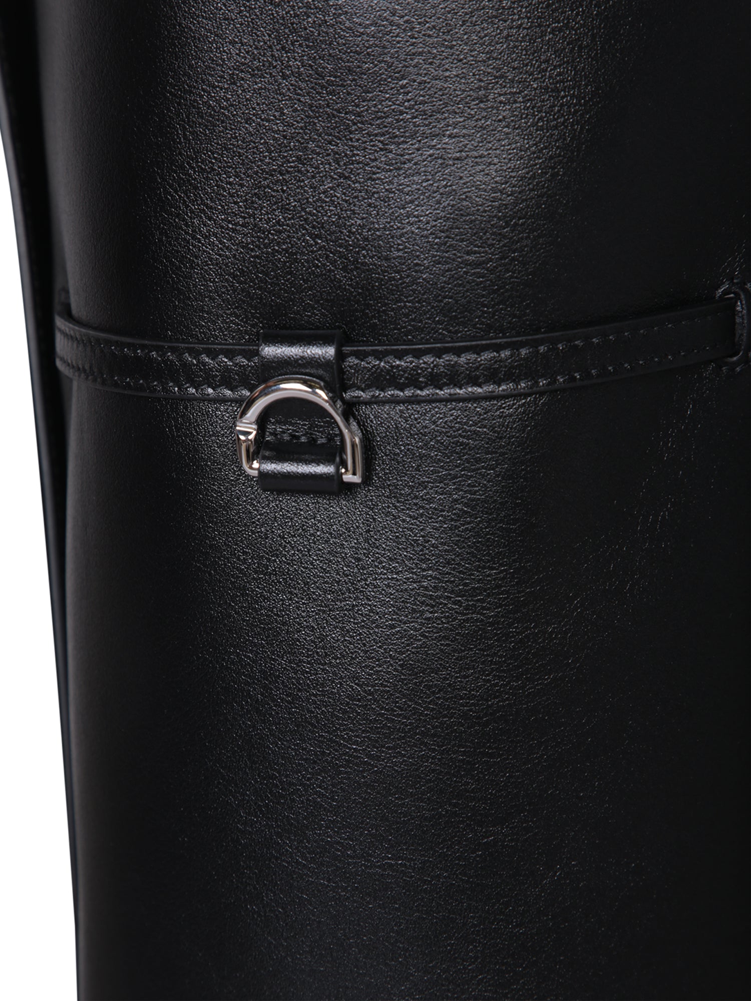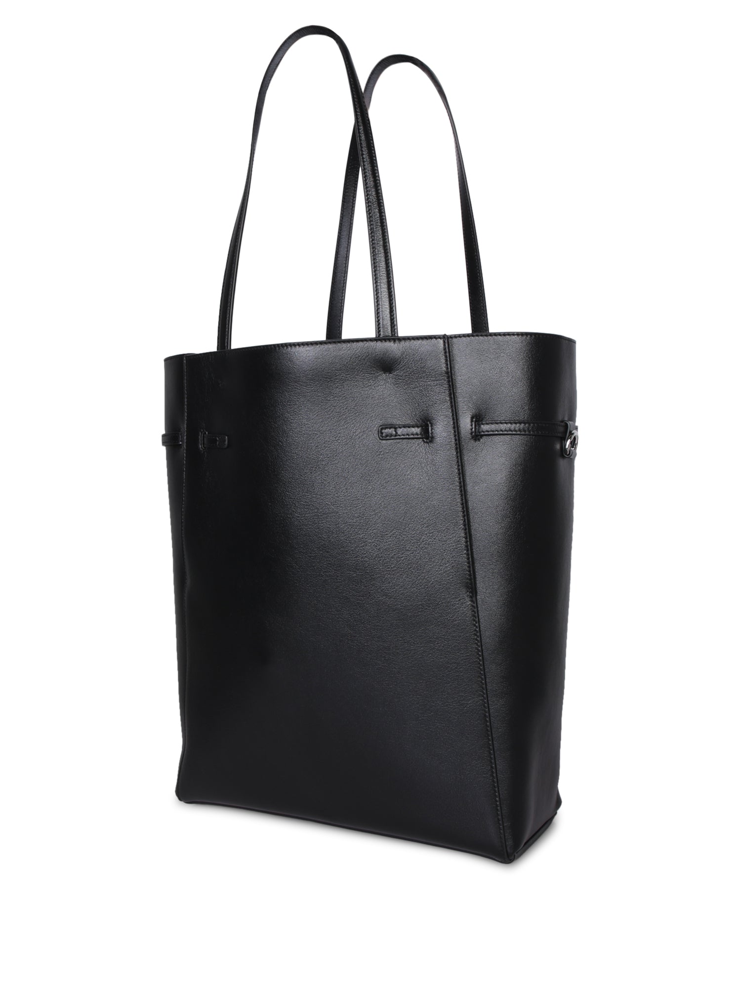 Crafted from high-quality black leather. Features long handles for easy shoulder carrying. Includes a large main compartment with a magnetic closure.