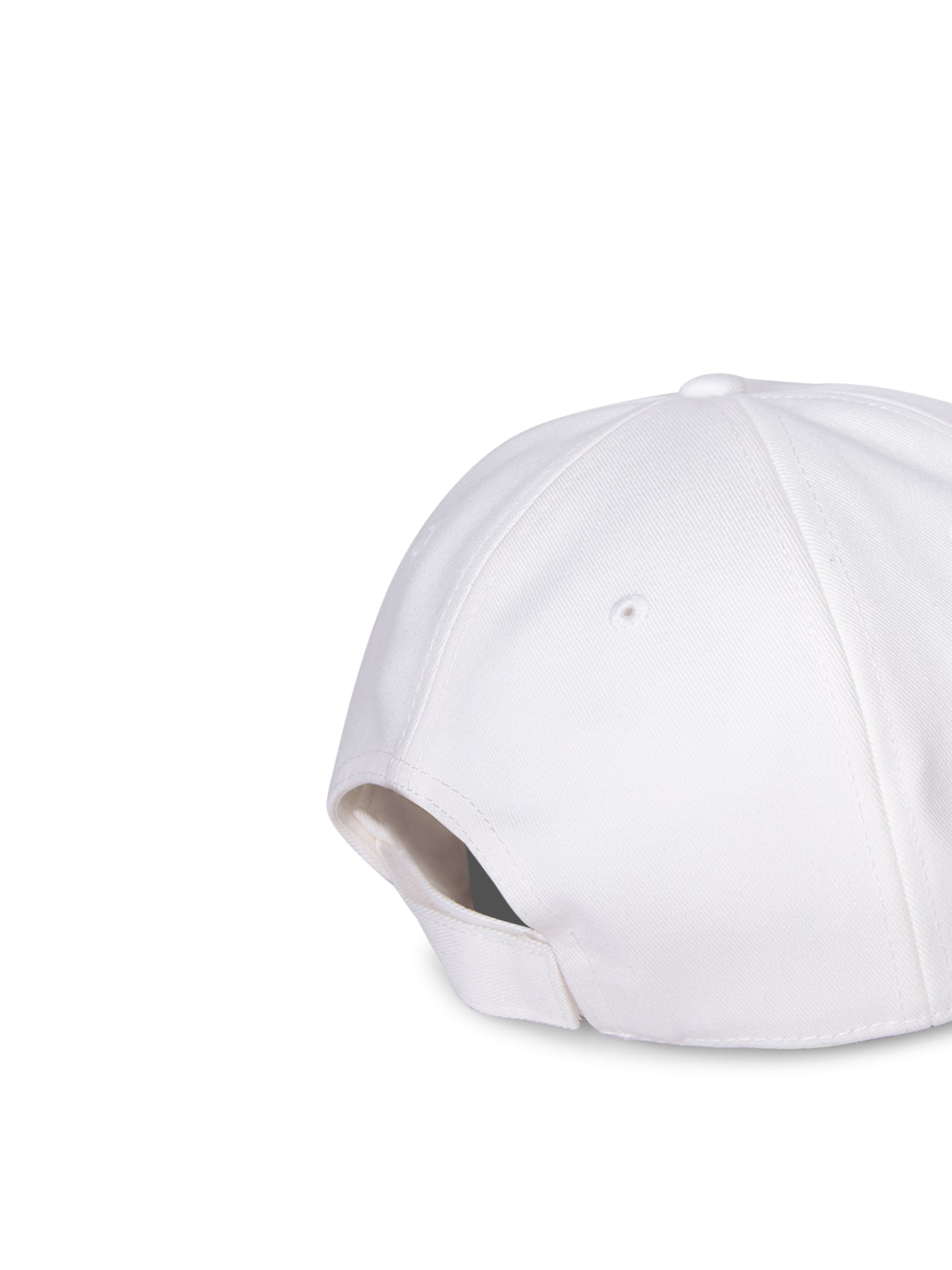 White technical fabric baseball cap. Frontal embroidered Moncler logo. Adjustable back closure.