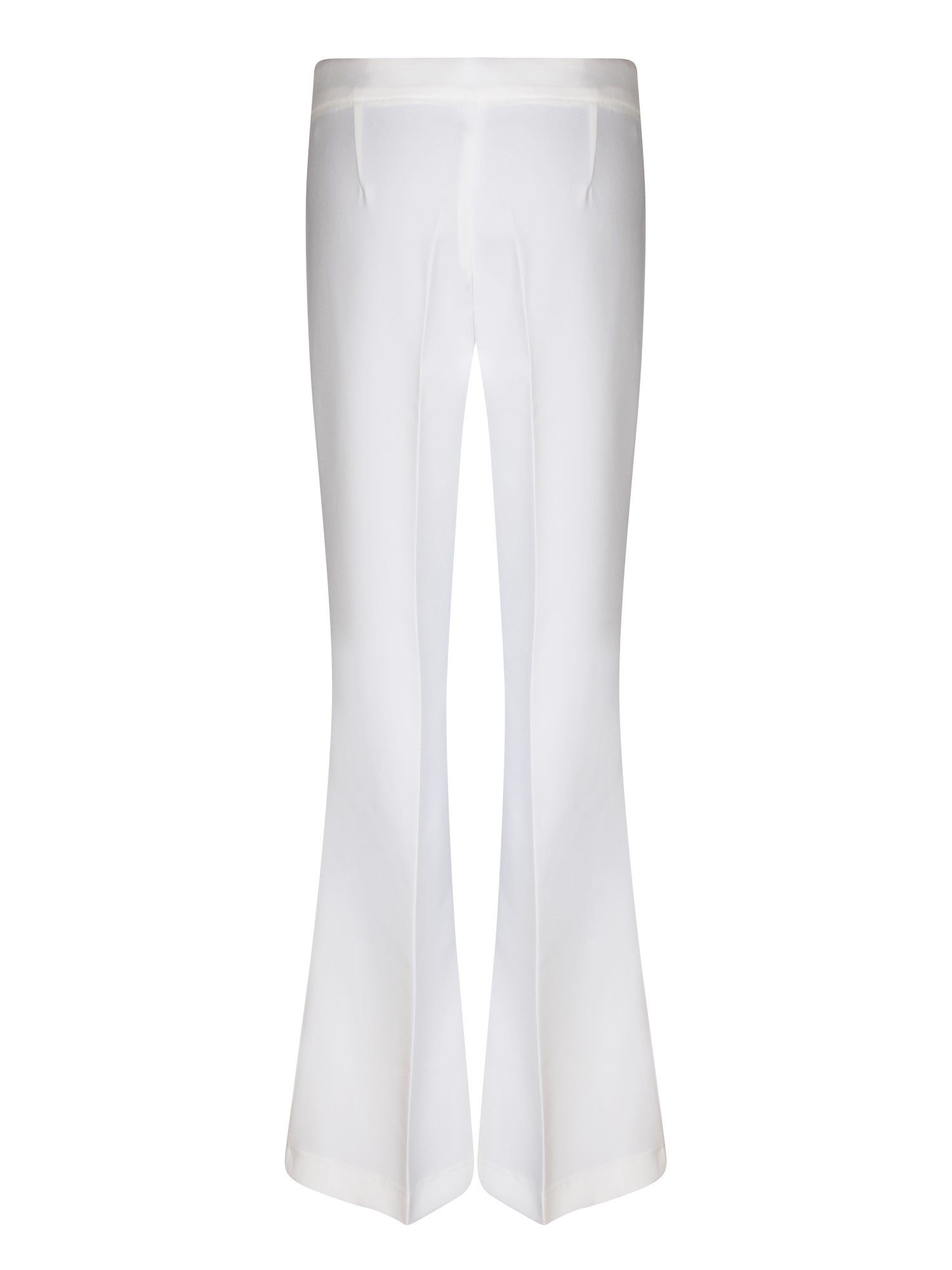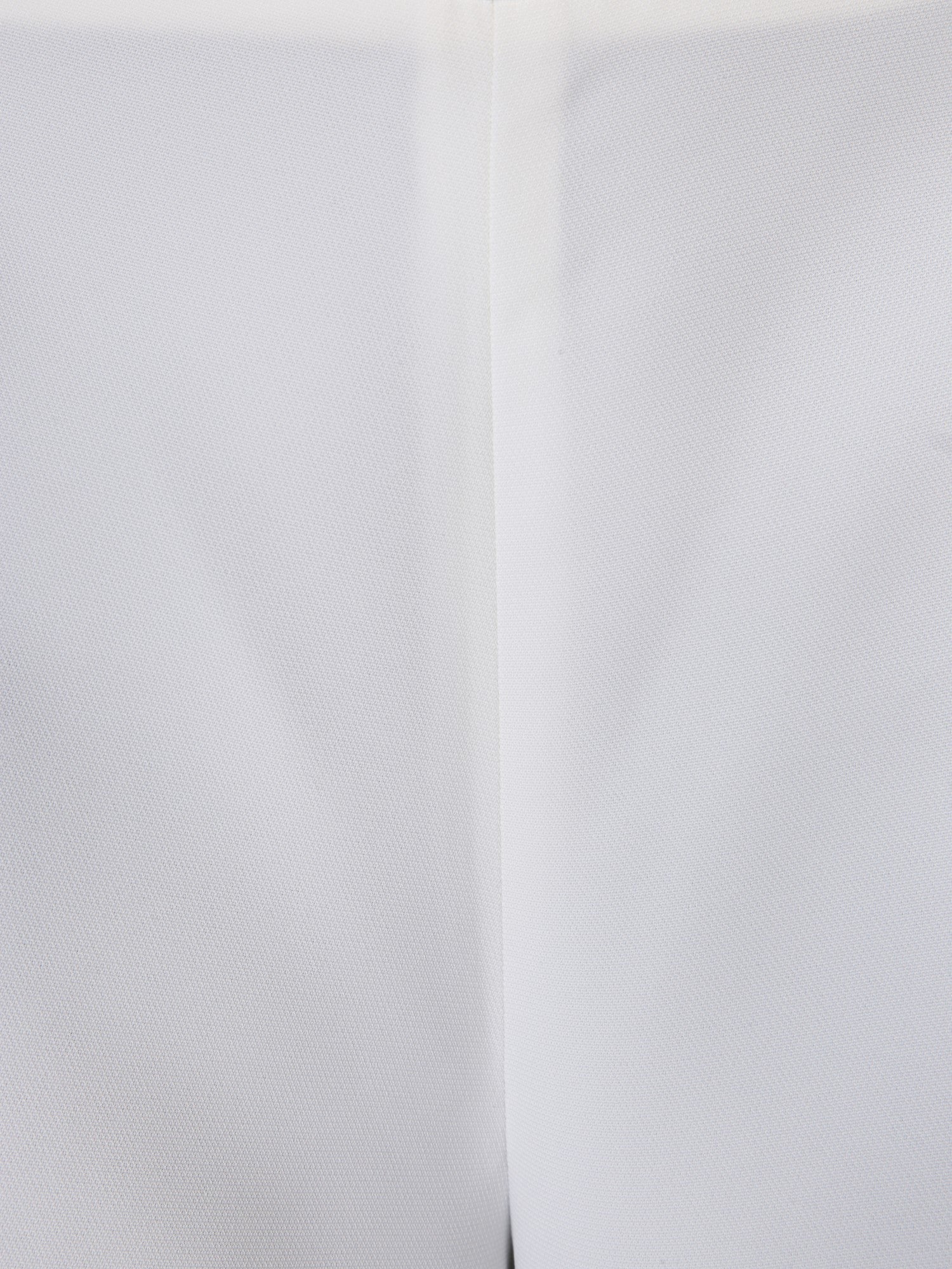 Mid-rise. Flared cut. Fluid cady fabric. Concealed side zip closure.