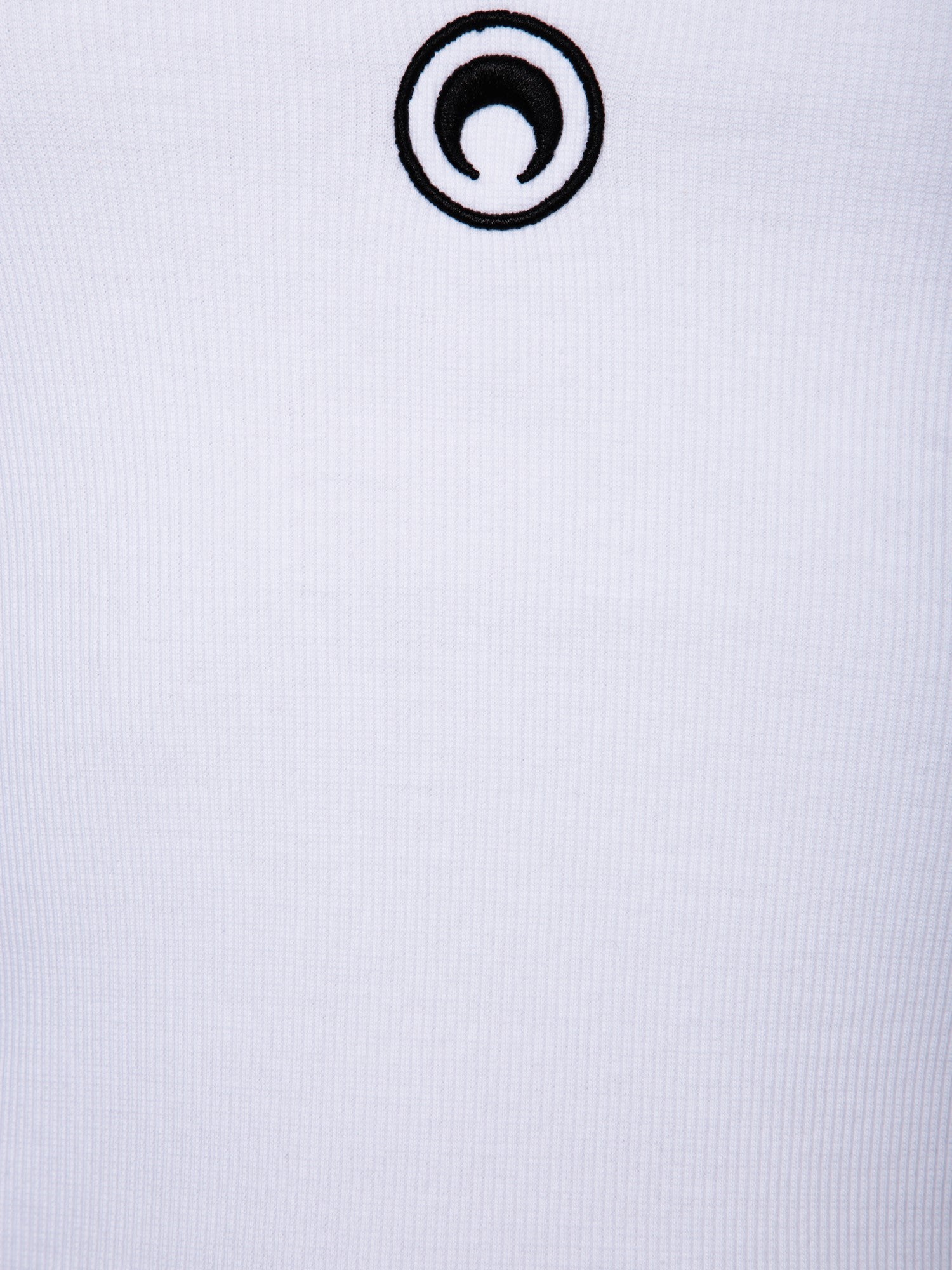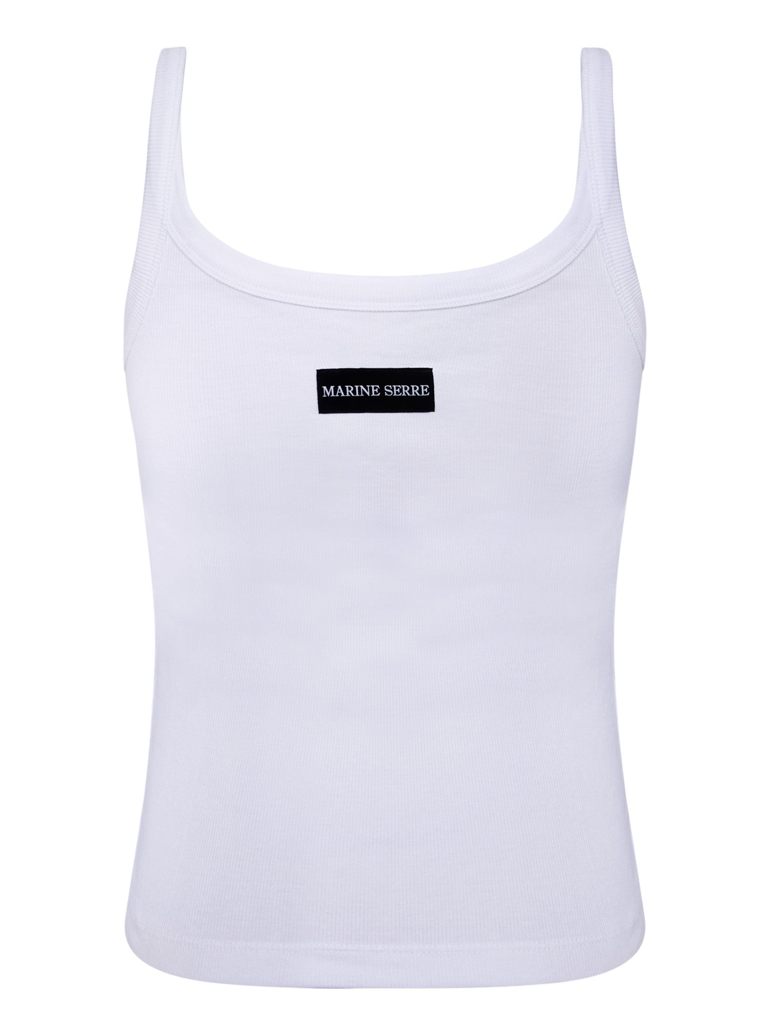 Sleeveless white cotton top. Iconic Marine Serre Moon logo at the front.