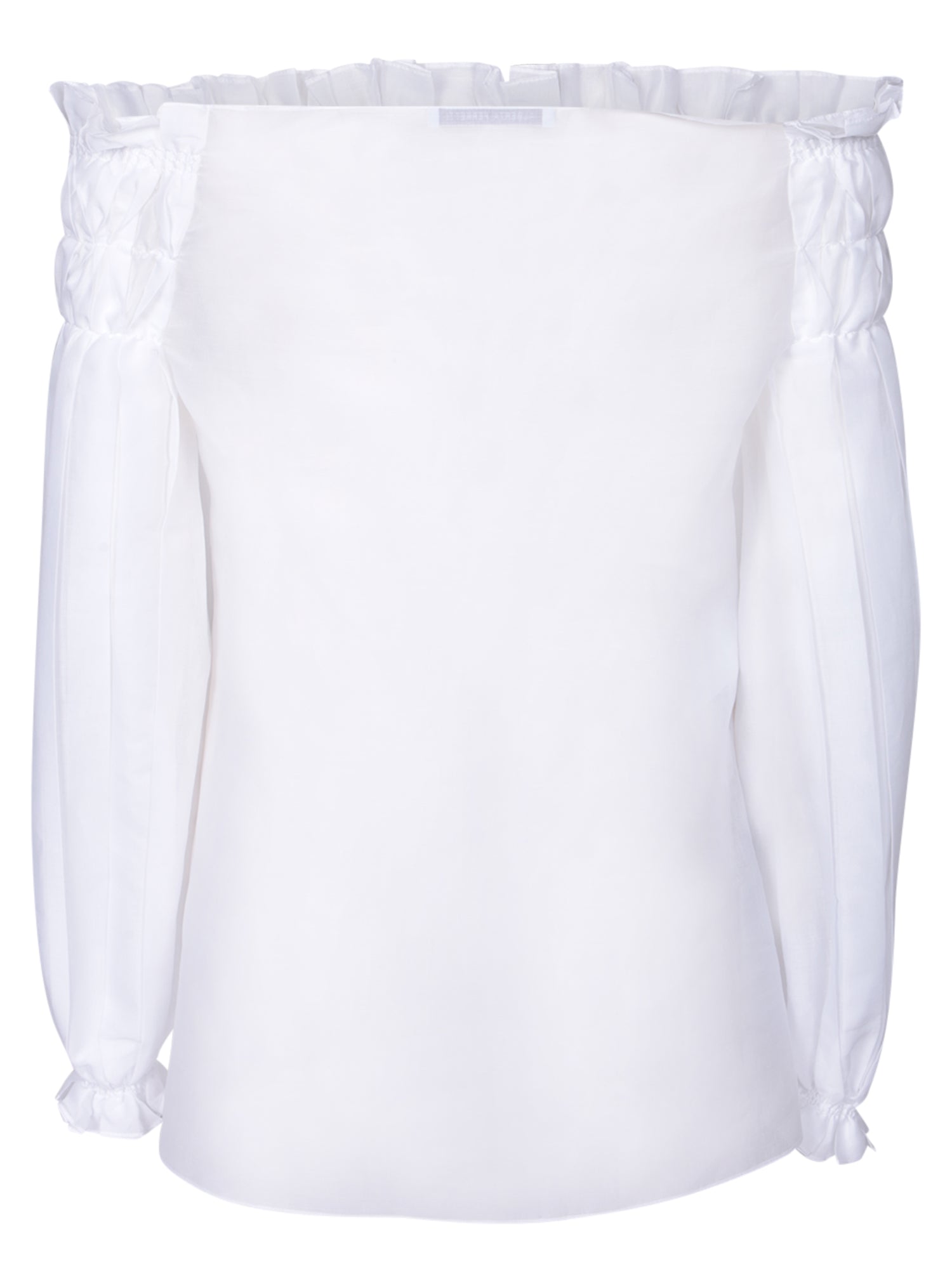 Long puff sleeves. Elastic neckline. Organza fabric.