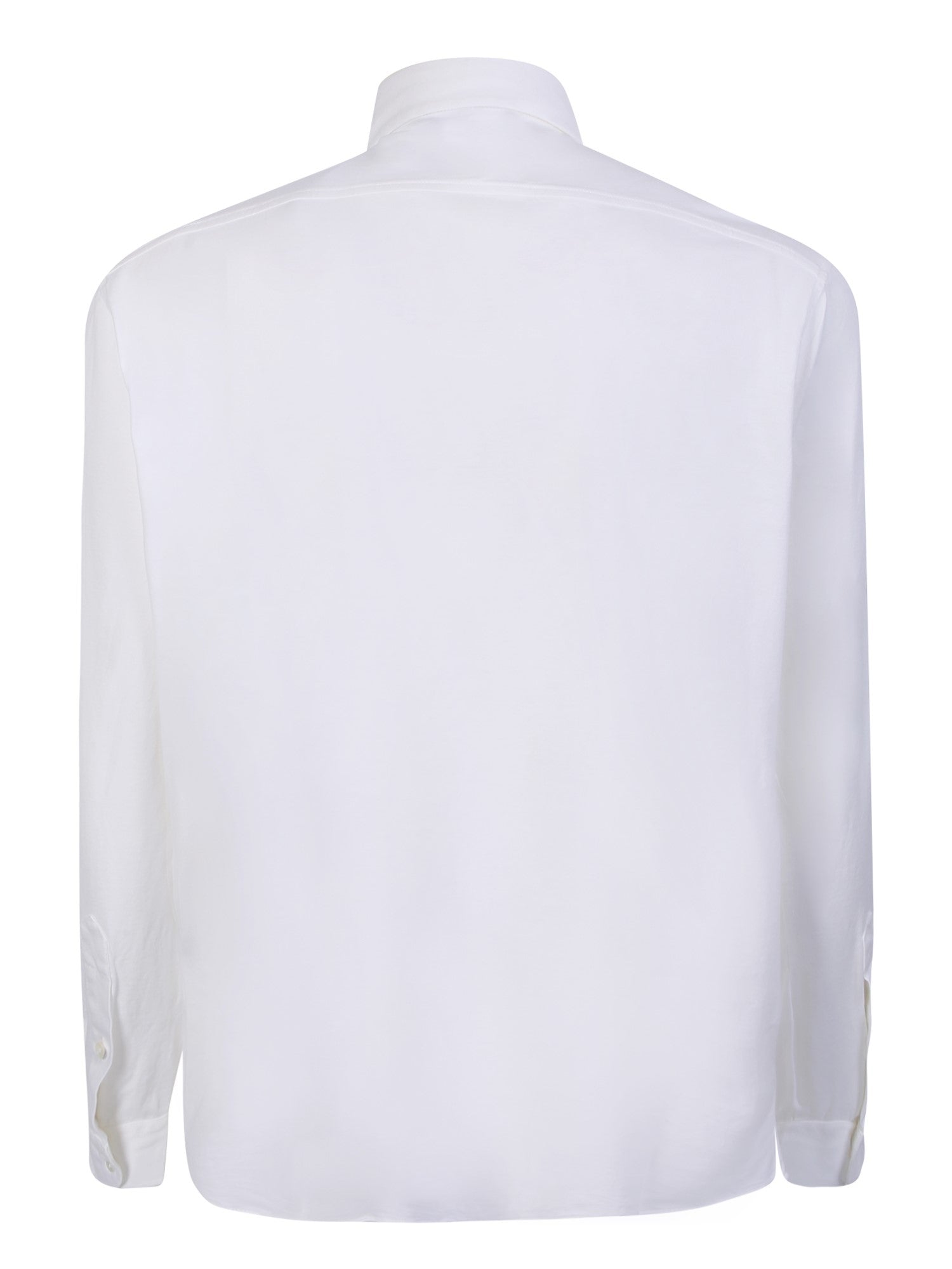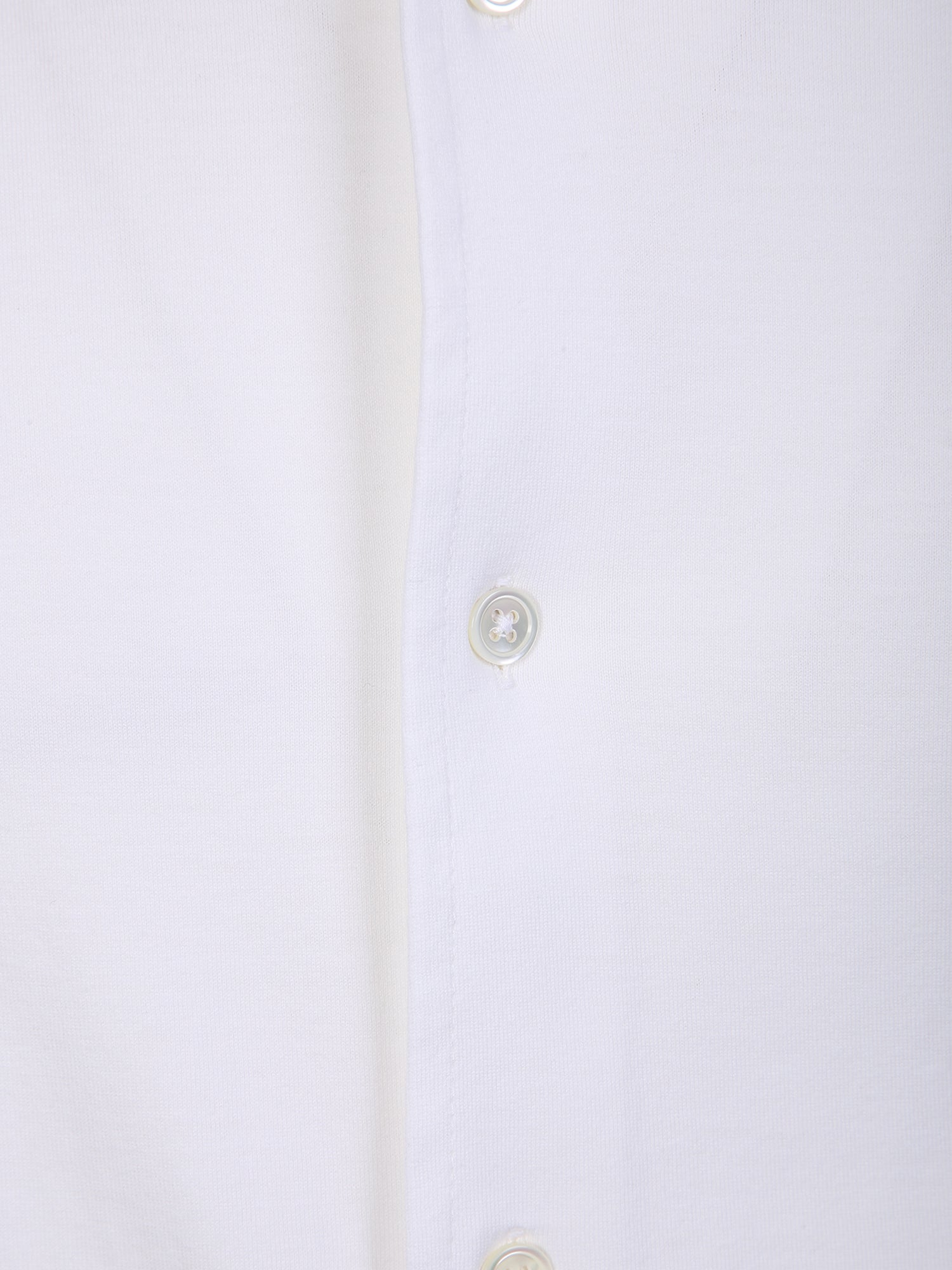 White dyed jersey shirt by Dell'Oglio; the meeting of classic elegance and inform materials defines the timeless style of this garment
