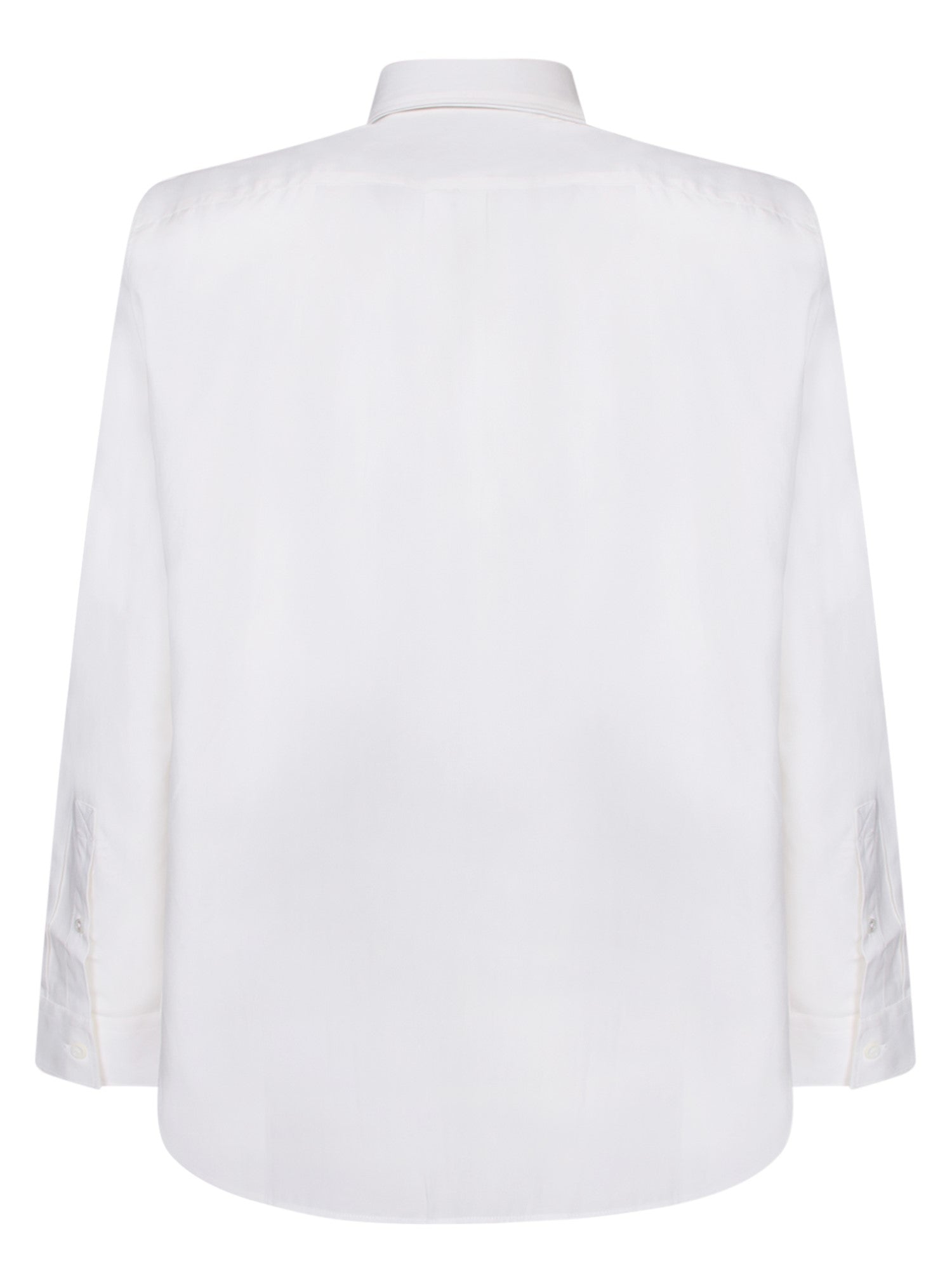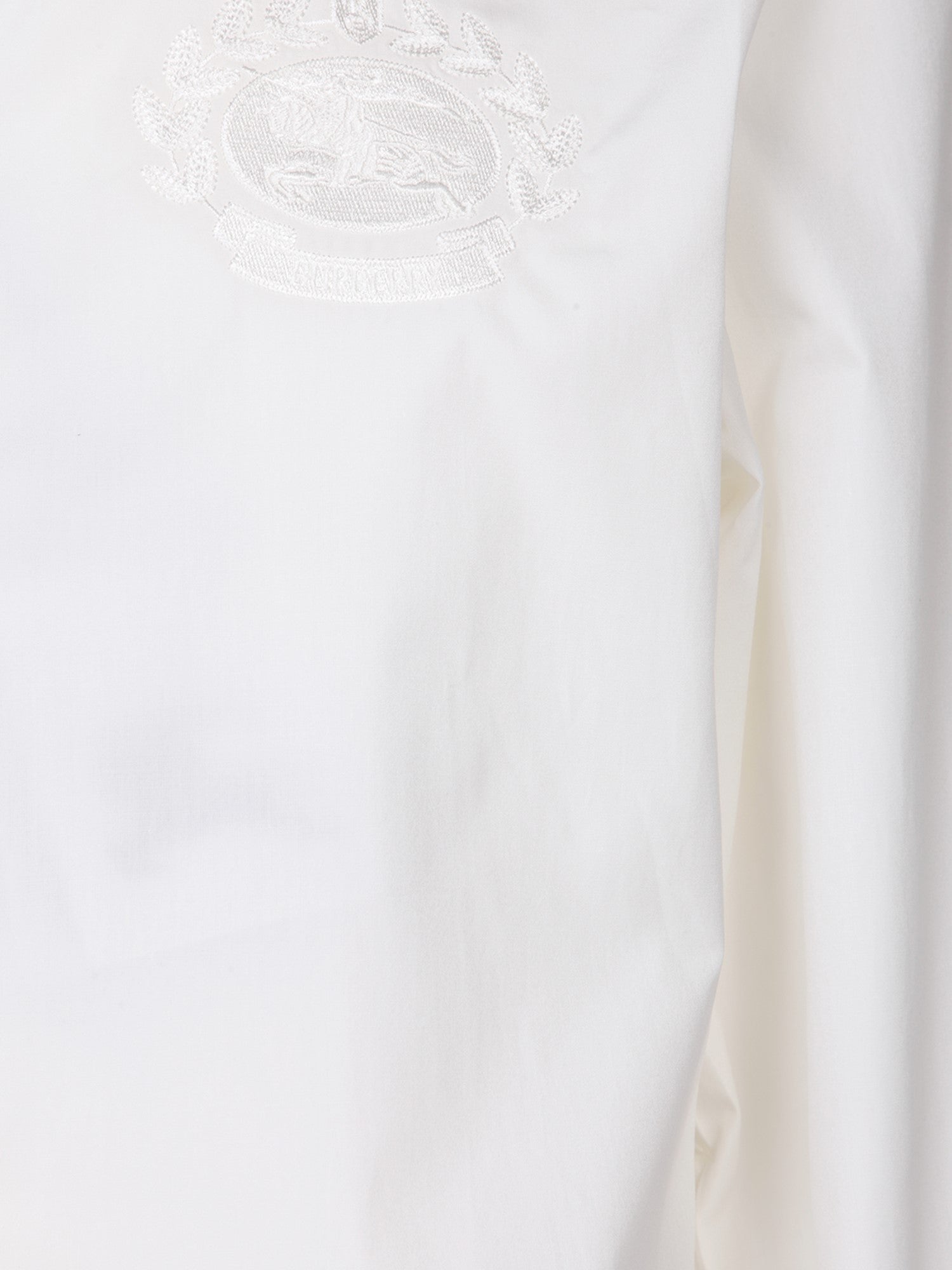 Long-sleeved white cotton shirt. Classic collar. Front button closure. Embroidered Knight logo on the chest.