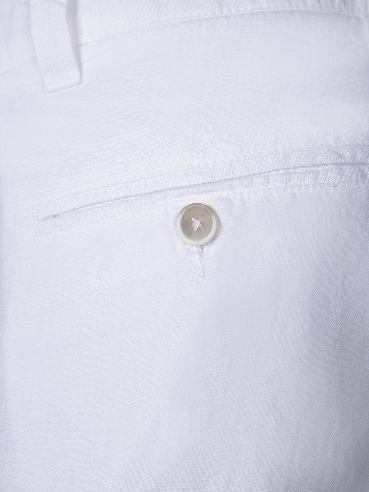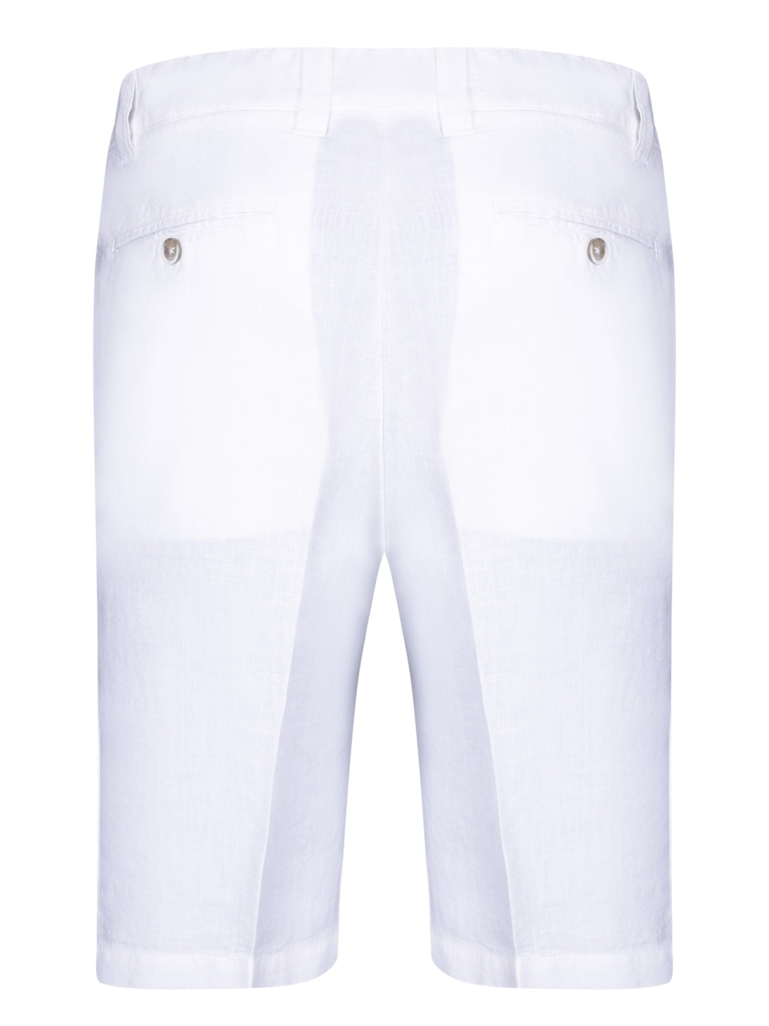 Pure linen Bermuda shorts in white. Button and zipper closure. Slanted side pockets.