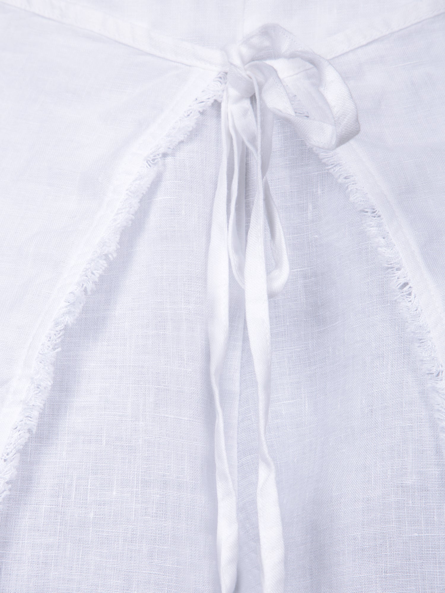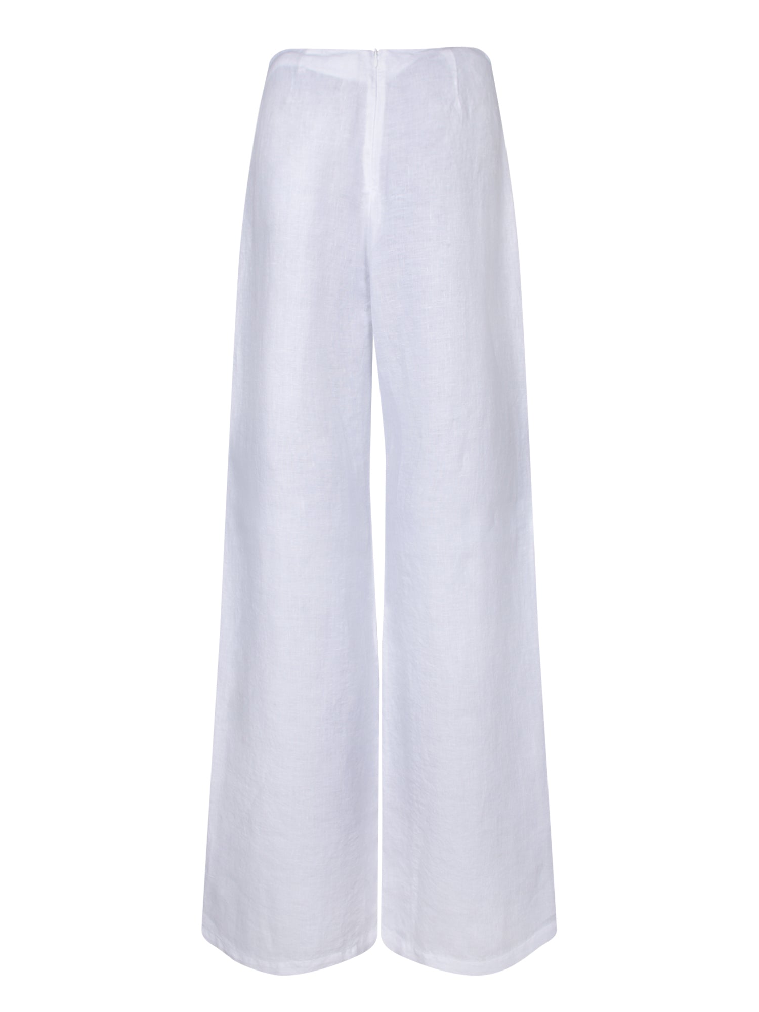 Adjustable high waist with ties. Wide, fluid leg. Pure linen.