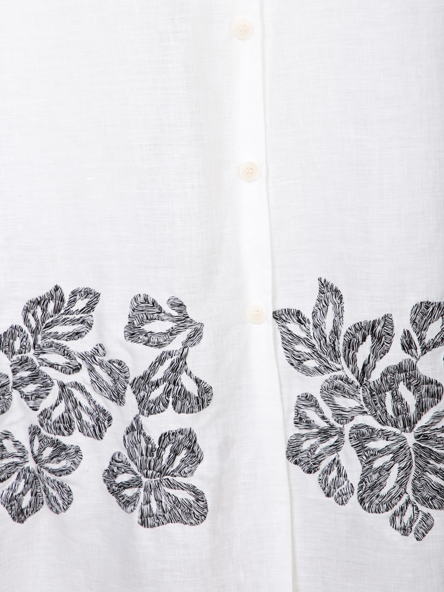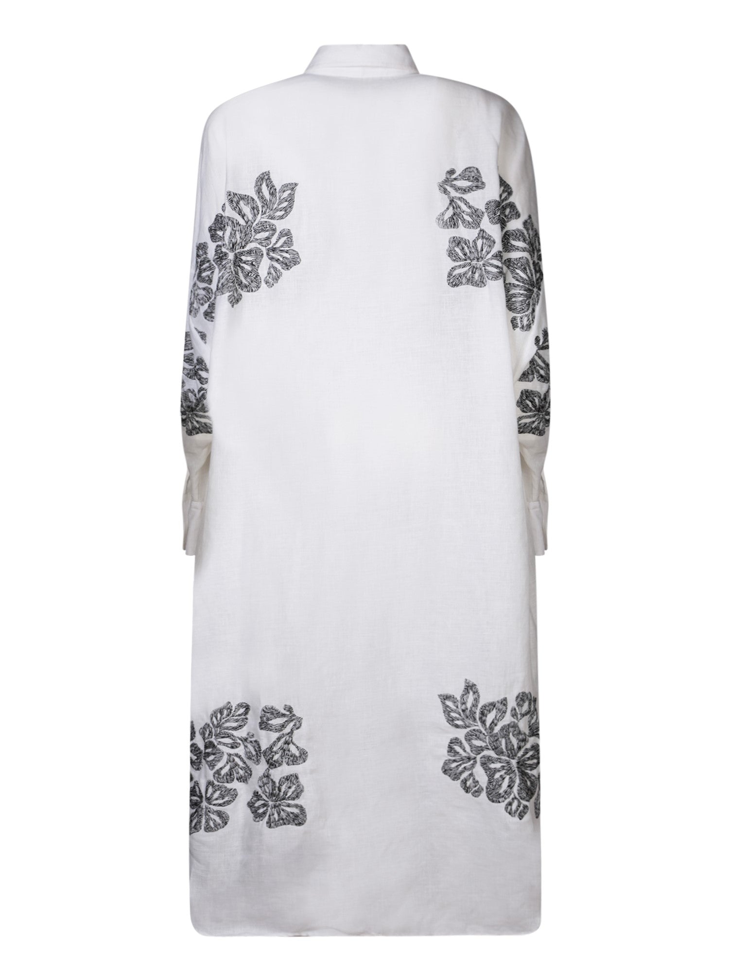 Long sleeves. Contrast floral embroidery. Classic shirt collar.
