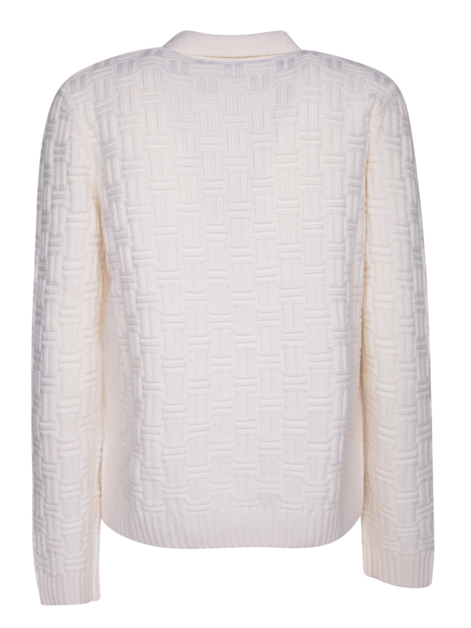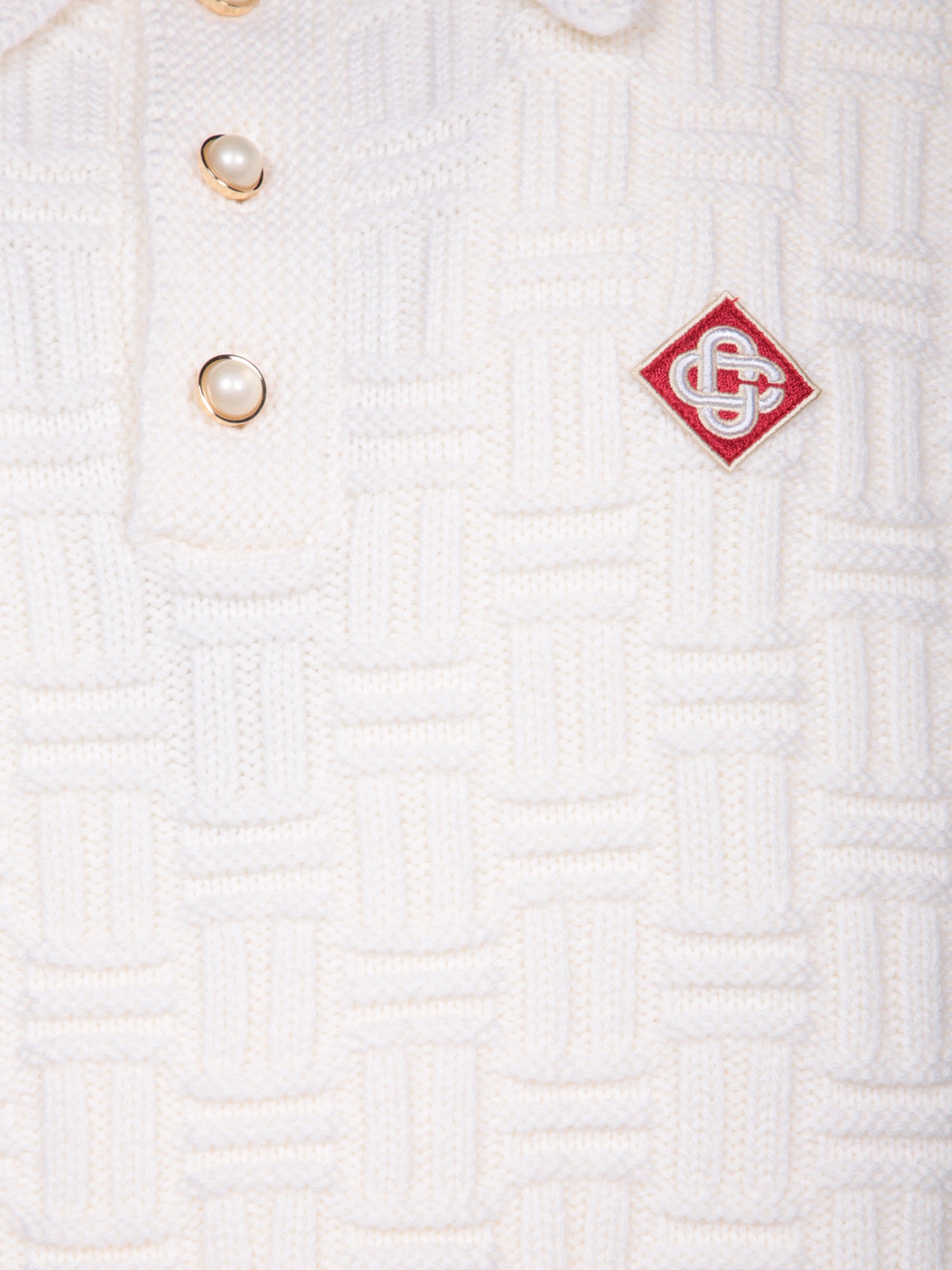 Long-sleeve merino wool polo. Classic collar with three-button closure. Logo detail on the chest.