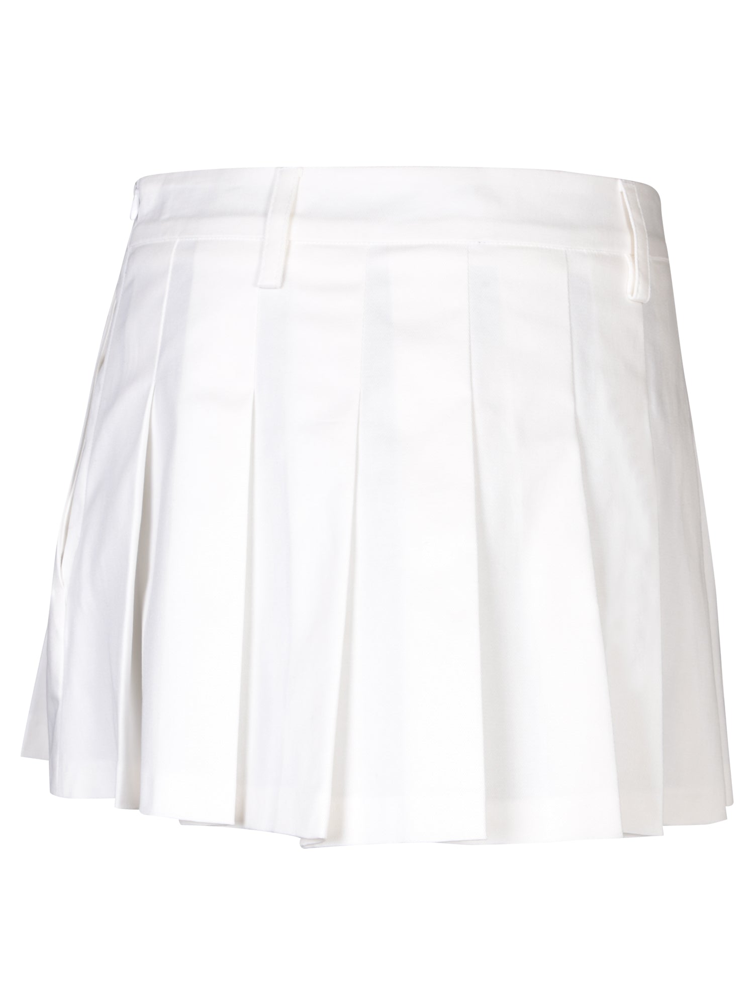 High-waisted. A-line cut. Side welt pocket.