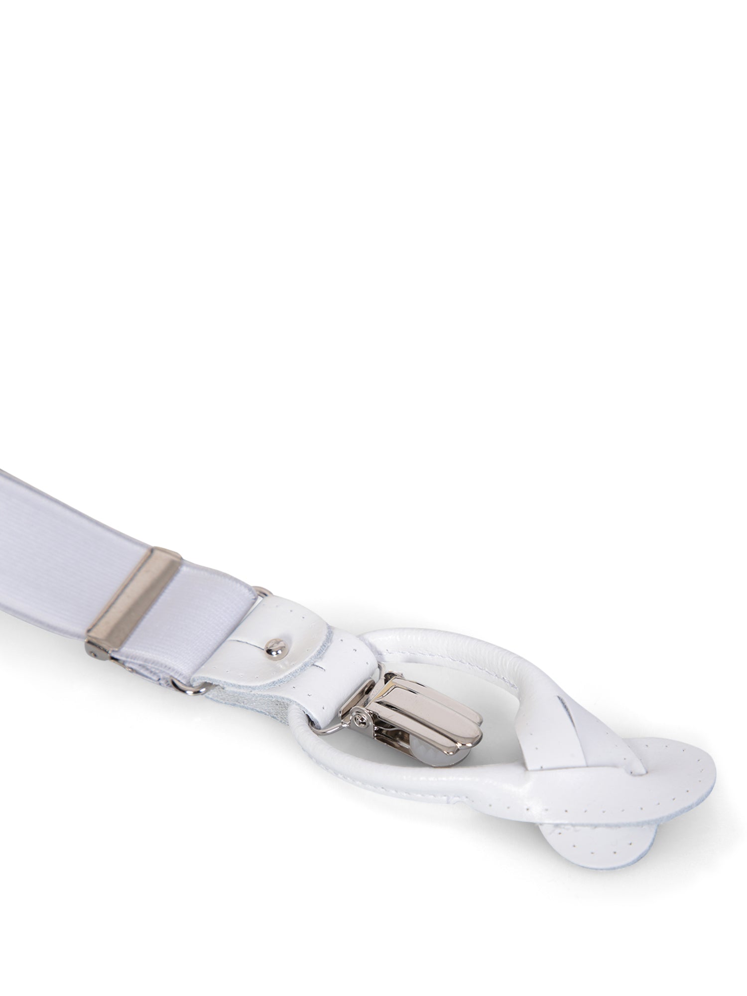 White suspenders by Dell'Oglio. Timeless accessory that has undergone evolutions over time, yet retains its original elegant design